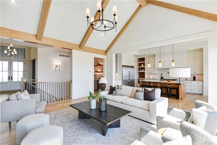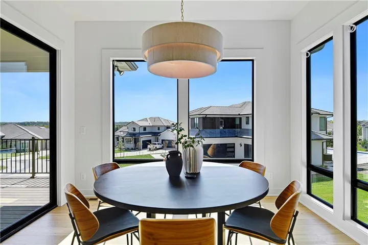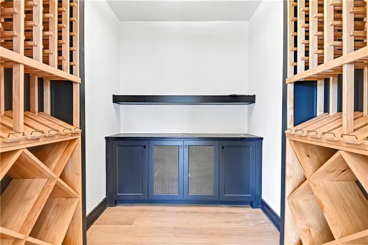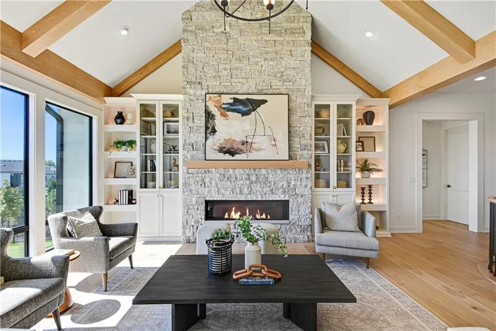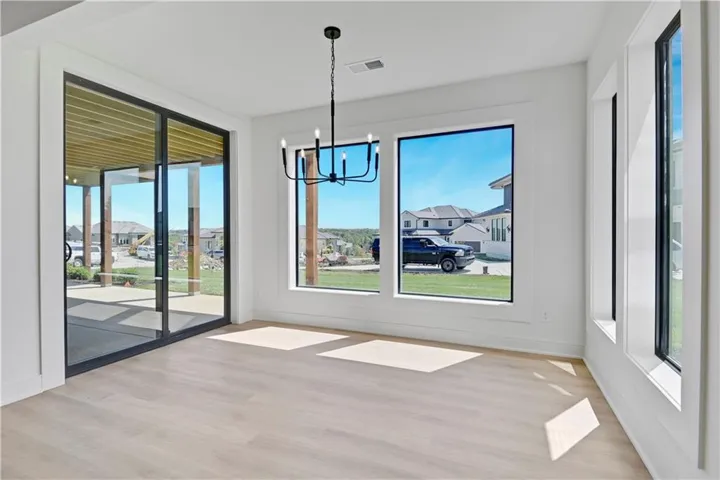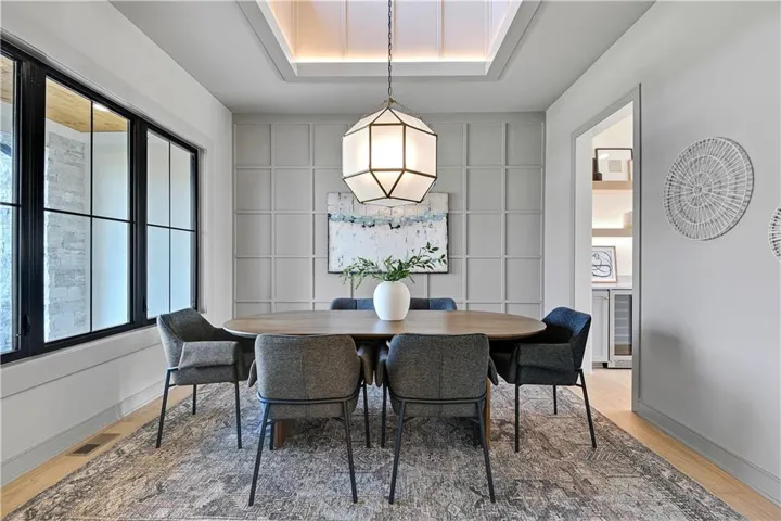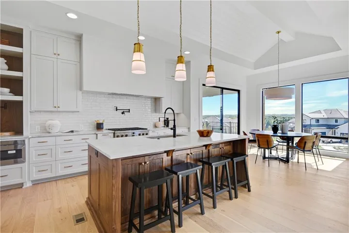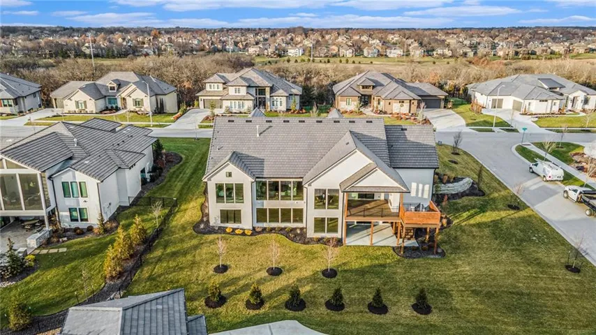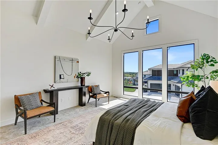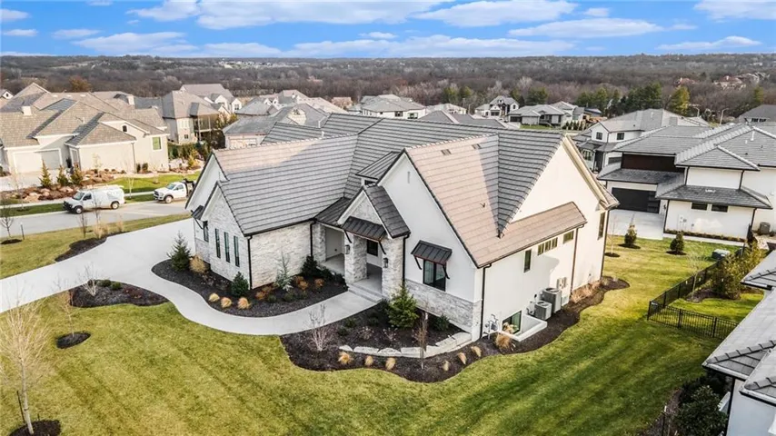 +"PublicRemarks": "Stunning modern country by Fieldstone Fine Homes in Hills of Leawood. Reverse 1.5 Story plan offers ample room for everyone. An entertainer's dream, the home has a spacious covered lanai and separate grilling deck offering space for full outdoor kitchen. Chef's kitchen with fantastic prep kitchen and separate walk-in pantry. Butler's pantry/wine bar leads you from formal dining into dramatic living/kitchen space. Floor to ceiling windows for abundant natural lighting and south views. Oversized primary suite is a retreat of its own and main floor offers a 2nd bedroom w/private bath-perfect for guests. Lower level features 2 additional bedrooms, both ensuite, with a 3rd optional bedroom or exercise room; large rec area, bar, temp-controlled wine room, theater and generous unfinished storage as well. This home offers something for everyone!"