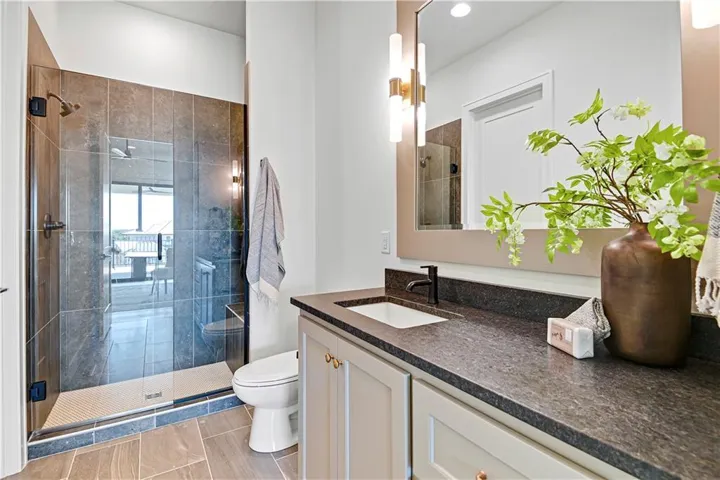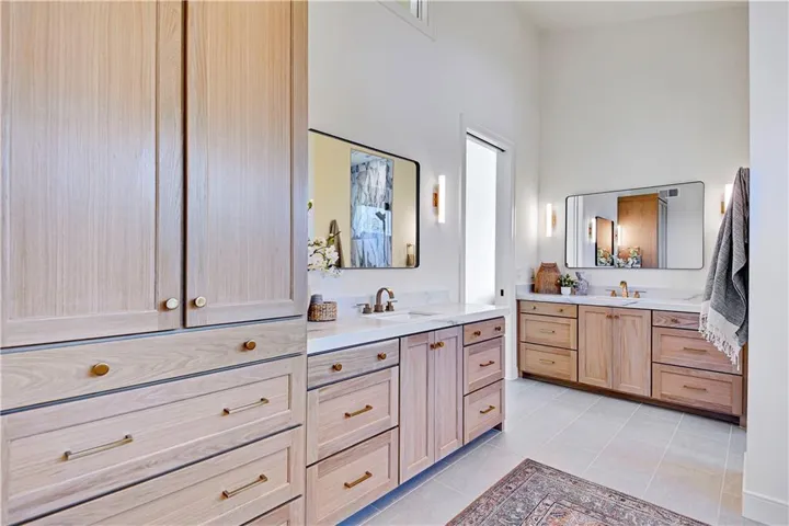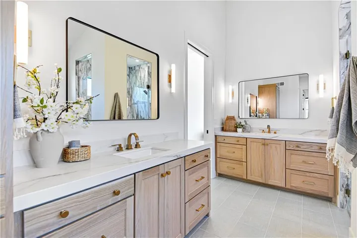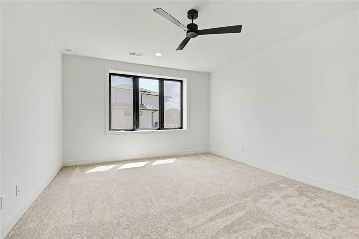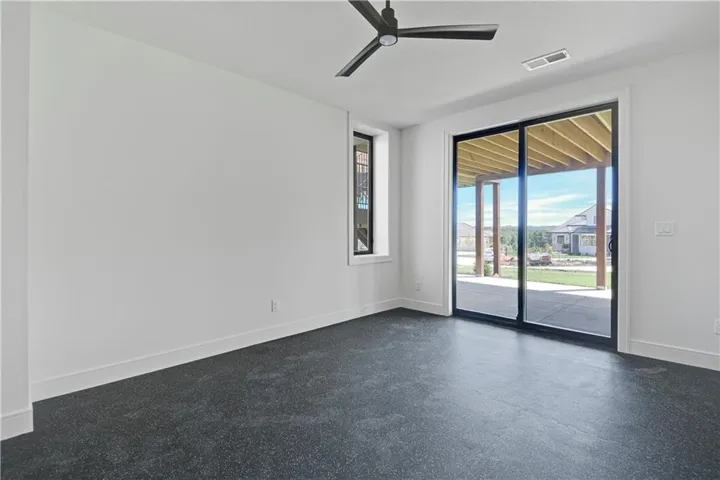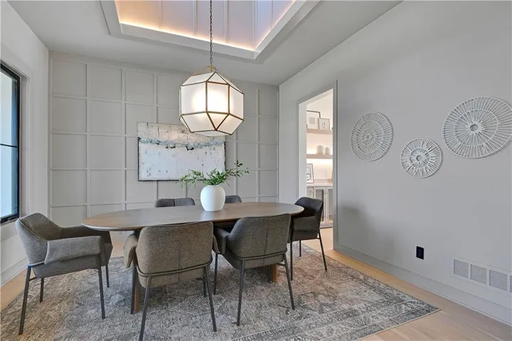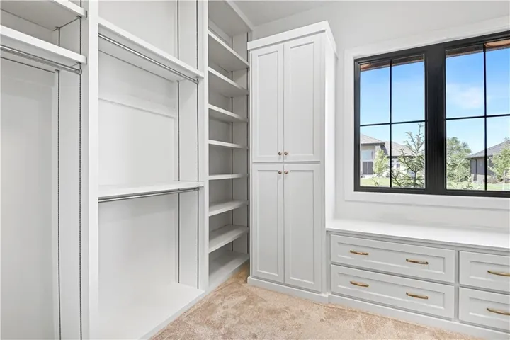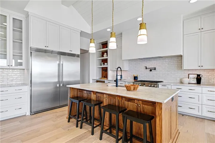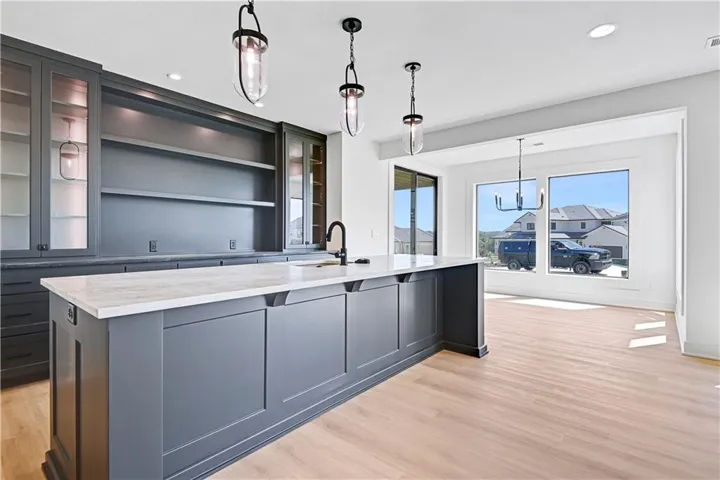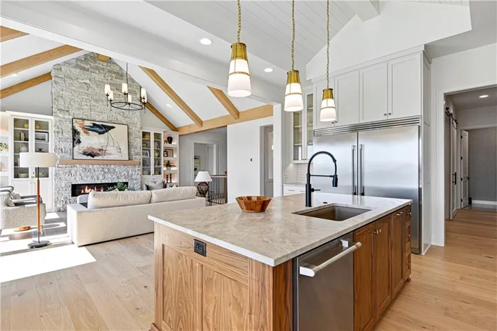 +"PublicRemarks": "Stunning modern country by Fieldstone Fine Homes in Hills of Leawood. Reverse 1.5 Story plan offers ample room for everyone. An entertainer's dream, the home has a spacious covered lanai and separate grilling deck offering space for full outdoor kitchen. Chef's kitchen with fantastic prep kitchen and separate walk-in pantry. Butler's pantry/wine bar leads you from formal dining into dramatic living/kitchen space. Floor to ceiling windows for abundant natural lighting and south views. Oversized primary suite is a retreat of its own and main floor offers a 2nd bedroom w/private bath-perfect for guests. Lower level features 2 additional bedrooms, both ensuite, with a 3rd optional bedroom or exercise room; large rec area, bar, temp-controlled wine room, theater and generous unfinished storage as well. This home offers something for everyone!"