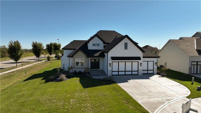 Curb Appeal with Dimensional Landscaping, Beautiful Front Elevation and Double Front Door. Greeted by the Well-Known and Highly Sought After Curved Staircase, Sky High Ceilings and Open Layout. The Trim Details in this Home Portrays True Luxury - Ship Lap Ceiling in Formal Dining, Wainscoting Detail and Floor to Ceiling Ship lap Surrounding Fireplace. Main Level Master Suite with Double Door Entry, TWO Walk in Closets and Breath-Taking Master Bathroom. Master Bathroom Features Quartz Counters, Double Vanity, Linen Closet, Custom Built Storage Hutch, Soaker Tub and Enormous Walk in Shower with Dual Shower Heads. Curved Staircase Leads you to Loft Space and 4 more Bedrooms! Home is Complete and Ready to Move In. NKCSD - Staley High School. Hunt Midwest Community! Community Swimming Pool! Walking Trails! Taxes and Sq Ft Estimated.