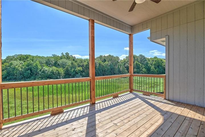 The Apex reverse 1 1/2 by Prieb Homes begins with a welcoming front porch entry leading you into this open concept floor plan. Beautiful hardwood floors throughout the entry, great room, kitchen, dining area and mud room. Spacious great room with fireplace and lots of natural light opens to the kitchen and dining area. Delightful cook's kitchen includes a center island with room for bar stool seating, lovely granite countertops, apron front sink, stainless steel appliances, painted custom cabinets with undercabinet lighting, upgraded cabinet hardware w/soft closing drawers and doors, cabinet hood & built in microwave plus walk in pantry. Walk out to a covered deck from the dining area. Private master suite with vaulted ceiling leads into this lovely bath with double granite vanities, tile floors, large tiled shower, custom cabinets and awesome walk in closet. Laundry room conveniently located off the master bath. The second, first floor bedroom/office with closet, is a multipurpose room for whatever you need! The U-shaped staircase leads down to the lower level featuring a nice rec room leading out to the backyard. Two bedrooms with walk in closets and a full bath complete the living area in this home. With safety in mind, this home has a storm room for whenever you need it. Lots of storage, walk out lot, sprinkler system and a 3 car garage are also a part of this charming home. We are adjacent to the newly renovated Lake Olathe that offers a wonderful variety of outdoor activities. Prairie Farms has a large pool, cabana, play area and walking trails making it a great place to call home!