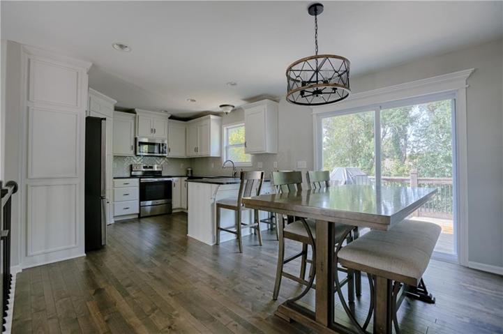 +"PublicRemarks": "Well maintained 4 Bedroom 3 Bath with Open Plan is move-in ready! Kitchen has granite counters, white cabinets, stainless appliances, walk-in pantry, & eating bar. Hardwood floors flow to Dining Room with wrought iron & wood railings overlooking vaulted living room with woodburning fireplace. Primary suite has coffered ceiling, walk-in closet, dual vanity and walk-in shower. Walk-out lower level offers 4th bedroom, 3rd full bath, and family room with a wall of floor to ceiling windows bringing in tons of natural lighting. Walk out to the fenced yard with covered patio and deck. Sub-basement has partial view-out egress window making it perfect for another bedroom, office or rec room. This home has it all, make your appointment today!"
