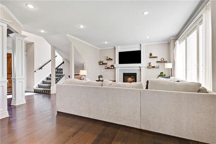 +"PublicRemarks": "This 5 bed 4.1 bath two story home is situated at the end of a cul-de-sac in the highly sought after BluHawk subdivision and features a large fenced backyard with a covered patio. Upon entering you will love the newly painted main floor, lit by a ton of natural light. Hard wood floors gleam throughout as you pass a formal dining area and you enter the kitchen with newly refinished cabinets and granite island. The main floor bedroom/flex room is conveniently located by the updated bathroom featuring beautifully tiled walls and granite counter tops. 3 large bedrooms are found on the 2nd level, each having access to bathrooms. The primary bedroom boasts a beautiful tray ceiling and flows into an updated en suite with laundry access and large walk in closet including built in shelving. Don't miss the large family/rec room in the finished basement that features an updated half bath (plumbing stubbed out for shower/tub) and unfinished flex room with egress window! Only half a mile to award winning Blue Valley schools and walking distance to pool, basketball court, and club house!"