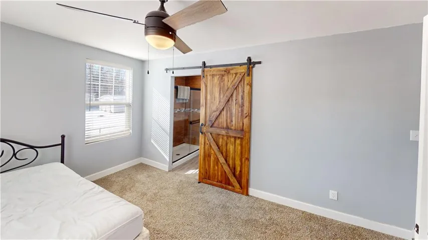 "LongDescription" => "Unfurnished bedroom featuring lofted ceiling, light carpet, ensuite bathroom, ceiling fan, and a textured ceiling"