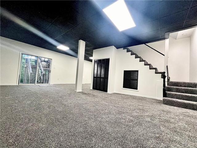 "LongDescription" => "Carpeted living room featuring stairs and a textured ceiling"