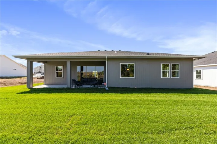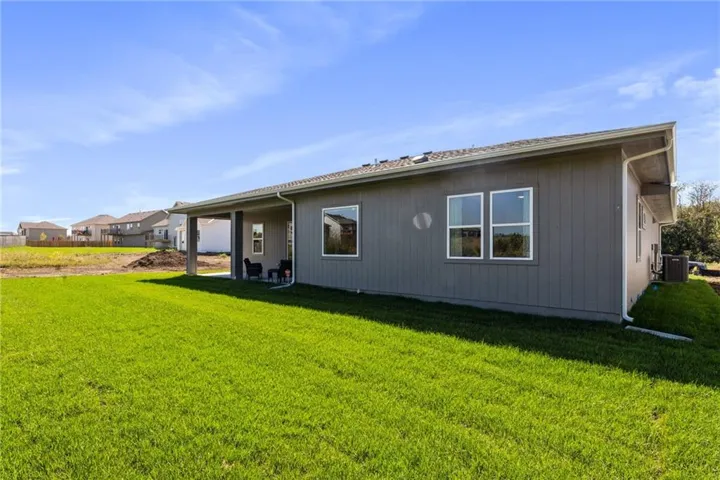 Welcome to the innovative design and modern style of Hakes Brothers homes! This Modern Prairie Montana plan (former model home) includes many signature Hakes Brothers features - AMAZING 8 foot tall interior doors, impressive stacker door window wall, upscale kitchen with quartz/granite, gas range & sleek hood, and the striking floor to ceiling fireplace feature. Spacious primary bedroom and dazzling master bathroom finishes including walk in shower & LED lighted mirrors. The Hakes Brothers brilliant design provides clean, simple lines - bright open living spaces and designer colors/finishes. Large covered patio, sprinkler system & sodded yard. Located at Grayhawk, a beautiful neighborhood in Basehor next the elementary school with easy access to I435, I70 and K7 and close to Legends and downtown KC. BRAND NEW AND MOVE IN BEAUTIFUL!!