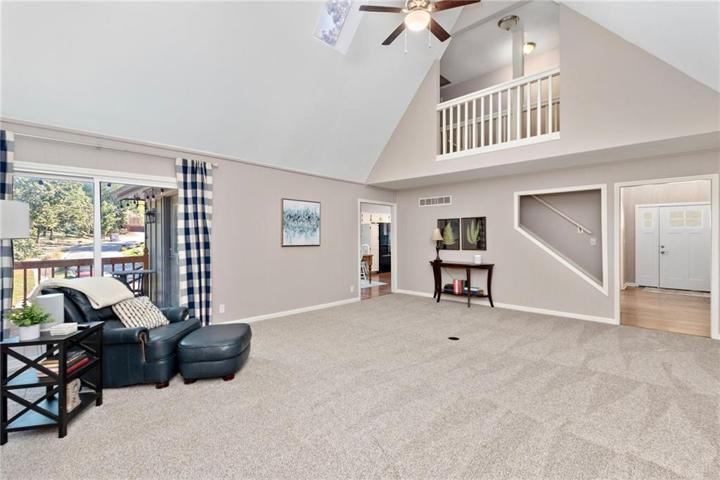 +"PublicRemarks": "This charming 1.5-story house with 4 bedrooms, 3 full bathrooms and one half-bath, a finished basement, and a 2-car garage is located in Northwest Woods subdivision in Shawnee, Kansas. The home has a lot of offers any buyer starting with the living room featuring a vaulted ceiling with a gas fireplace, an updated kitchen, a formal dining room, and a main-level laundry/mud room. The master bedroom and bathroom as well as a second bedroom with a full bath complete the main level. The second floor has two large bedrooms and another full bathroom with an open hallway that overlooks the living room. The basement comprises a two-car garage, and a second entertaining/living room with a non-conforming bedroom/office/workout room and a half-bath. The backyard has a large deck overlooking the entire backyard that is enclosed with a 5-foot privacy fence. This beautiful residence is of great value and is located close to shopping, walking/biking trails, and entertainment It has easy access to Shawnee Mission Parkway and I-435. Don't miss out on the opportunity to make 7000 Alvervane your next home!"