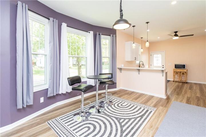 +"PublicRemarks": "COMPLETELY remodeled home near Bartlett Park! This gorgeous 3 bedroom, 2 bath home features a 2 car garage, an open layout and a beautiful new kitchen with quartz counters, new cabinets with soft close drawers & rollouts & new stainless Whirlpool appliances. The main floor also features 2 bedrooms, including the primary with en-suite and main floor laundry. Upstairs is a large third bedroom with access to attic storage. This complete renovation included low maintenance vinyl siding, shady front porch, new wiring, plumbing, spray foam insulation, electrical, floors, walls and everything in between!"