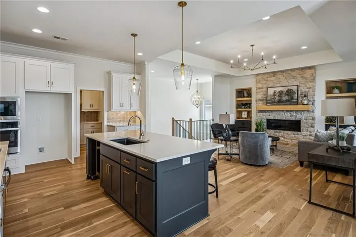 +"PublicRemarks": "MODEL HOME FOR SALE! HURRY TO TAKE ADVANTAGE OF THIS SALE PRICE THAT IS WELL BELOW REPRODUCTION PRICE! This amazing Plan by French Homes offers main level living with an open kitchen, dining room & great room. The main level also boasts a large walk-in pantry, Butler's Pantry and beverage Bar! The master bedroom/bath & 2nd bedroom/bath, plus laundry room with sink are also on the main level. Two bedrooms, a bath & rec room are in the walkout lower level. Rec room includes walk-behind wet bar. Wood floors in Great room, Kitchen, Dining room, Pantries, Master Bedroom, Bedroom 2/Office and entry; tile floors in baths & laundry; Granite or Quartz counters in kitchen & all baths; covered deck w/Fireplace off dining area. Lower level walks out to a spacious patio. Plus Much More! Room sizes, Sqft & taxes are estimated. PHOTOS ARE OF ACTUAL HOME"