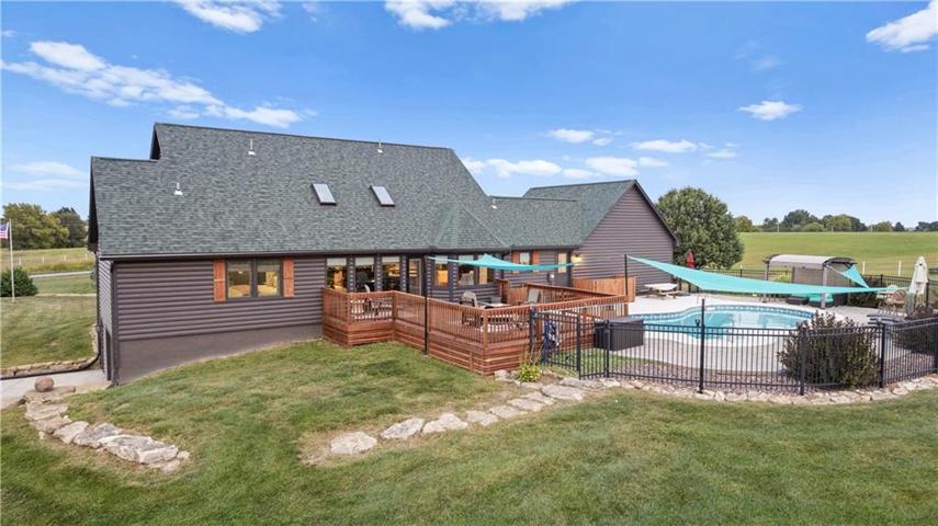 Step outside, and you'll discover a resort-like setting that includes an in-ground pool, perfect for relaxing and cooling off on warm summer days. The property also features a large stocked pond with Blue Gill, Bass, Catfish, and Grass Carp, making it a haven for fishing enthusiasts.\r\n