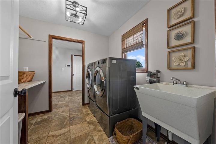 Enjoy main level living that includes a custom kitchen, dining room, primary suite, second bedroom, and convenient laundry room. Elegant crown molding highlights the ceilings and windows throughout, adding a touch of sophistication, while the gas fireplace (with blower) provides added warmth and a cozy feel.\r\n