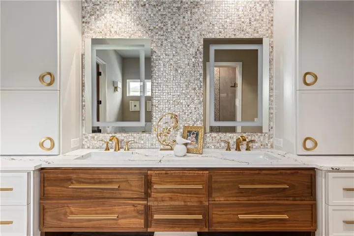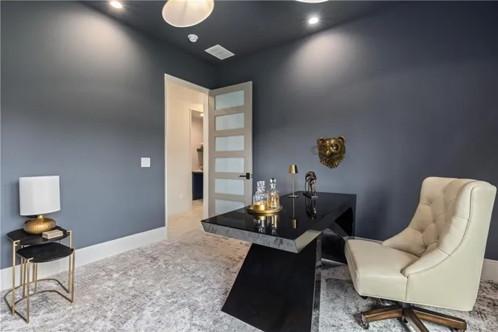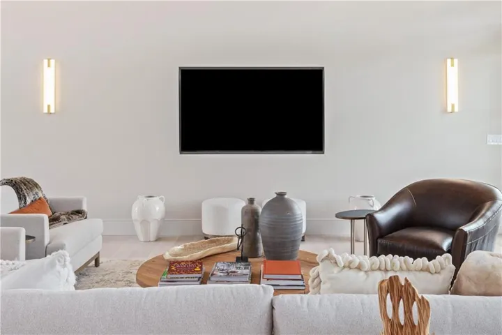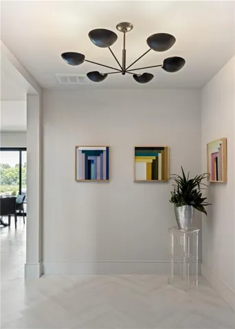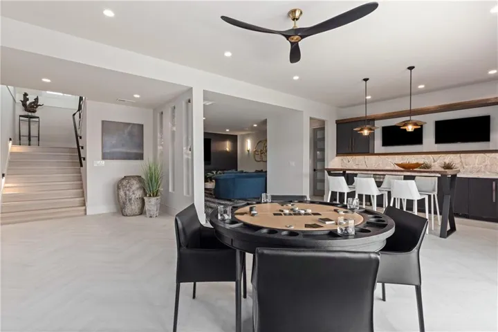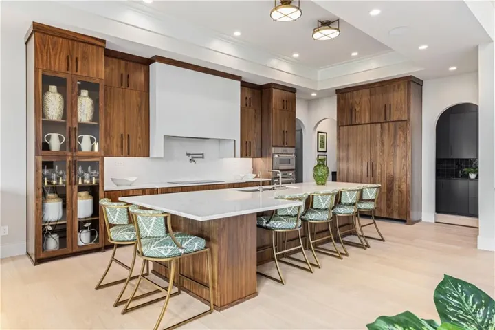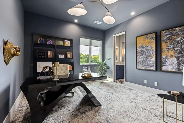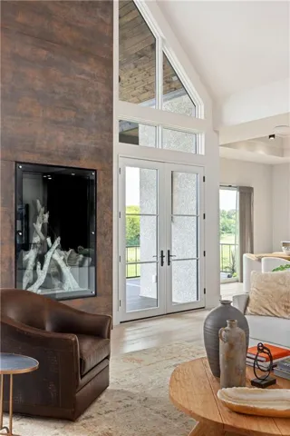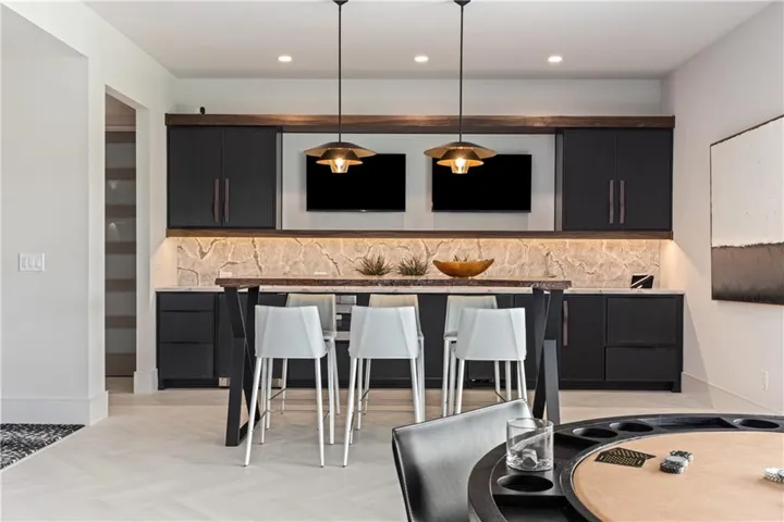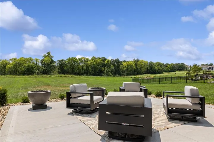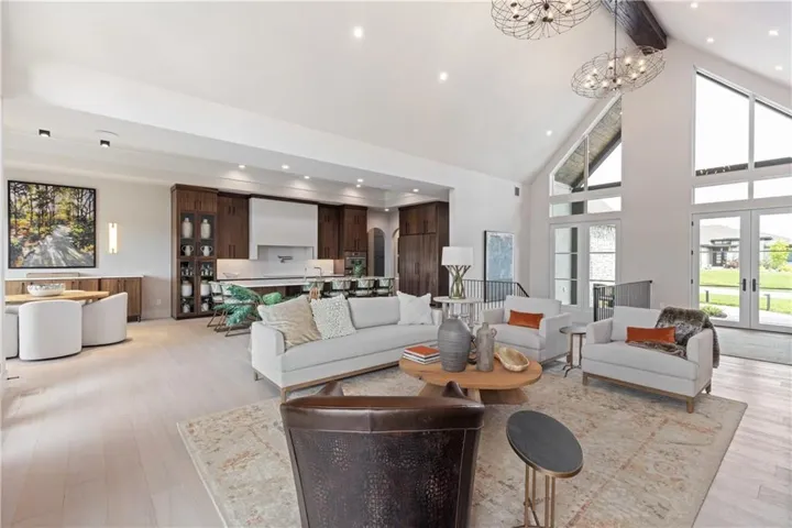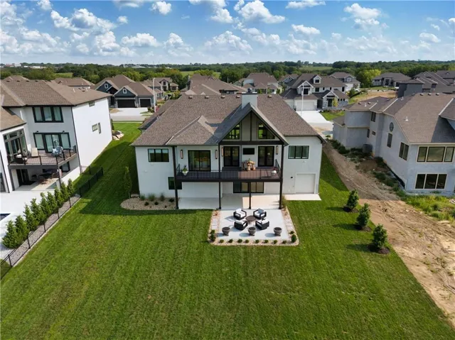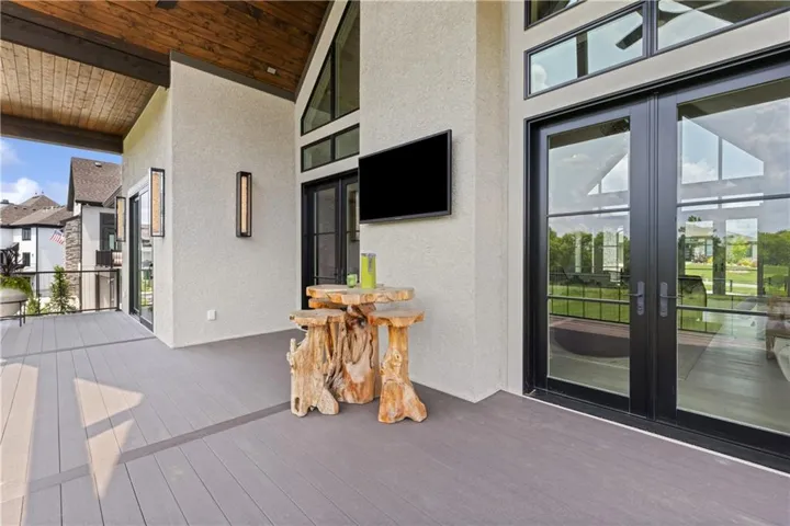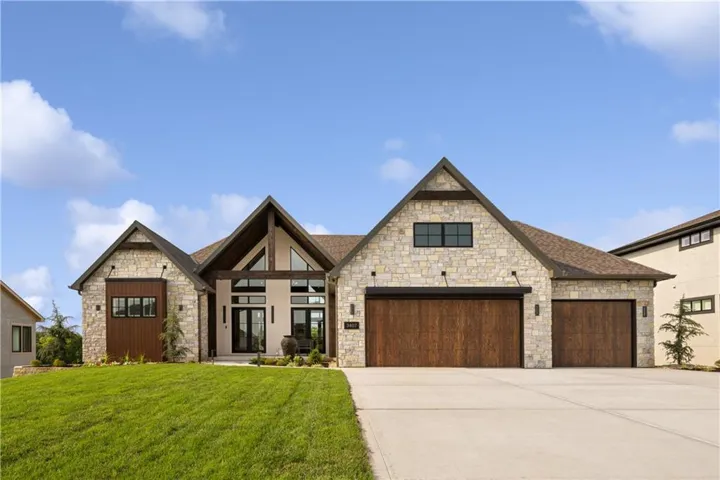 Welcome to an extraordinary luxury home built by the renowned Homes by Chris, featured in the Artisan Home Tour 2024. Nestled on an estate-sized golf course lot in the coveted Staley Farms, this modern clean line - inspired residence offers an unparalleled living experience. From the moment you arrive, you’ll be captivated by the incredible entrance, featuring a vaulted ceiling adorned with striking knotty pine beams. The centerpiece of the great room is a captivating fireplace, outlined with floor to ceiling solid surface panels, creating a stunning focal point that exudes elegance and warmth. The expansive covered deck & expanded patio is an entertainer’s dream, complete with three outdoor fire bowls, providing the perfect ambiance for gatherings and relaxation. The kitchen is a chef’s delight, boasting walnut cabinets, a Venetian plastered hood, pot filler, and top-of-the-line Thermador appliances. The 13’ island serves as a focal point for family and friends to gather, complemented by a catering/prep kitchen for seamless entertaining. This home is a technological marvel with $60,000 invested in low voltage systems by Independence Audio. The custom iron railing and spindles crafted by Austin Ironworks add a touch of artistry and sophistication to the interior design. Every detail has been meticulously crafted, including custom closets throughout the home by Inspired Closets. The primary suite offers a sanctuary of luxury with heated tile flooring in the bath, ensuring comfort and indulgence. The lower level is equally impressive, featuring an 8-foot linear fireplace, a second laundry room, and an exercise room.\r\n