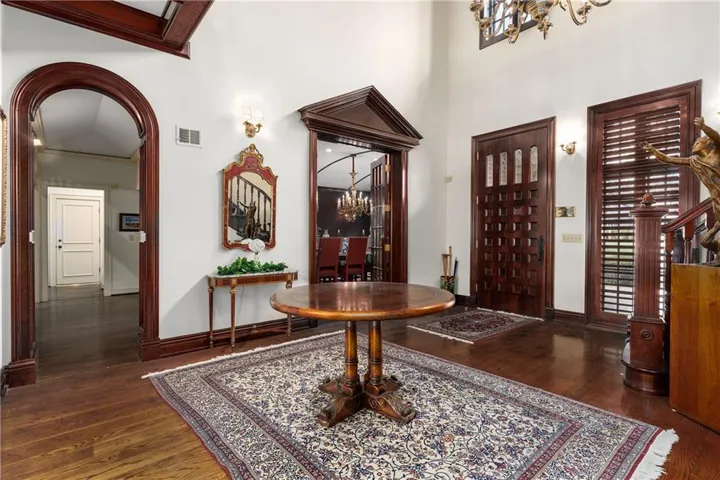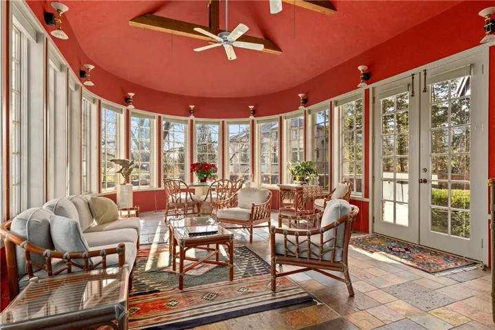 +"PublicRemarks": "Exquisite Hallbrook Estate with timeless European sophistication overlooking the 2nd fairway of the Tom Fazio Hallbrook Course! This stunning Rick Standard built, all-brick, 1.5-story home was constructed like no other, boasting 2 primary suites, 5 bedrooms, 5 full baths, & 2 half baths, offering luxury throughout. Upon entering, you'll be captivated by the grandeur of the foyer & living room with soaring ceiling heights, fireplace, wall of windows providing picturesque views & entrance onto the outdoor brick terrace. Adding to the home's sophisticated charm, the home features hardwood floors, plantation shutters, arched doorways, & beautiful wood molding. The impressive study offers floor-to-ceiling bookshelves found in the turret with custom curved woodwork/cabinets, & a 2nd floor Juliet balcony, adding additional distinction & charm. The expansive eat-in kitchen, complete with an oversized island & abundance of natural light, seamlessly connects to the large yet cozy hearth room, oversized sun-drenched sunroom, laundry room & outdoor living space. The main level primary suite features a fireplace, balcony, & a large elegant bath with marble & (2) generous walk-in closets. The second primary suite located on the 2nd floor has a magnificent balcony to enjoy the beautiful outdoors. The large walk-out lower level is ideal for entertaining & relaxing with a family room, recreation room, see-through stone fireplace, bar, non-conforming 6th bedroom, full bath & exercise room, plus an abundance of storage! The home also includes a private dog entrance with a dedicated dog room, catering to the needs of your furry companions. The breathtaking estate also boosts an idyllic outdoor sanctuary with expansive terraces overlooking a large level private backyard, ideal for a pool or fun yard games. This exceptional, one-of-a-kind Hallbrook home with its unparalleled blend of character & elegance is ready to make your own!"