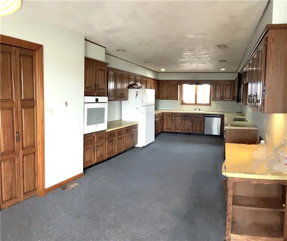 +"PublicRemarks": "Looking for a home in the country but hate the dust of living on gravel roads? Look no more, this is the perfect three bedroom home for you! This quaint property sits on a paved county highway & is bursting with charm, just waiting for your personal touches to make it your own. This home was once a show stopper, but today needs some TLC to get it back to it's original beauty. Most of the work needed consists of cosmetic improvements. The structure is in great shape and it won't take much to get this move-in ready. The heating system is made for efficiency & very low monthly cost to operate. Propane heat may be used alone or a wood burning stove is present, using a boiler system to provide heat, without smoke or the wood smell in the air. A full basement is present which could easily provide additional living space, if desired This ranch style brick home trimmed in white is surrounded with nice white vinyl fencing & pipe corral fencing. it sits on @ 3 acres, which is the perfect size for a hobby farmer. A 2 car attached garage is present, as well as a 1 car detached garage. In addition, three other outbuildings are present providing space for horses, chickens, small livestock and farm equipment. If you have a desire to have the best of both worlds, living close to town but on a beautiful small farm and you don't mind doing a little work, you'll want to see this property! The home will sell in it's present condition."