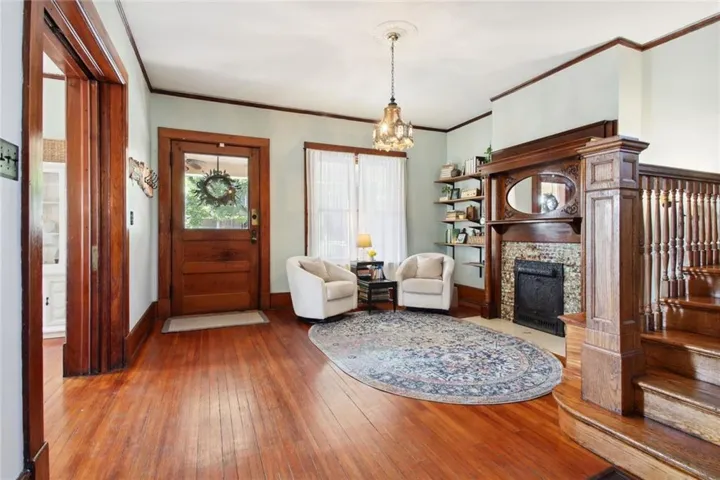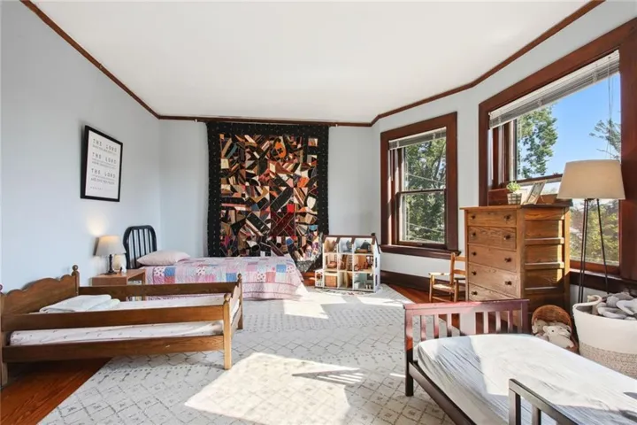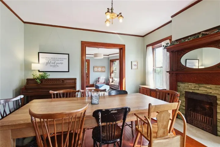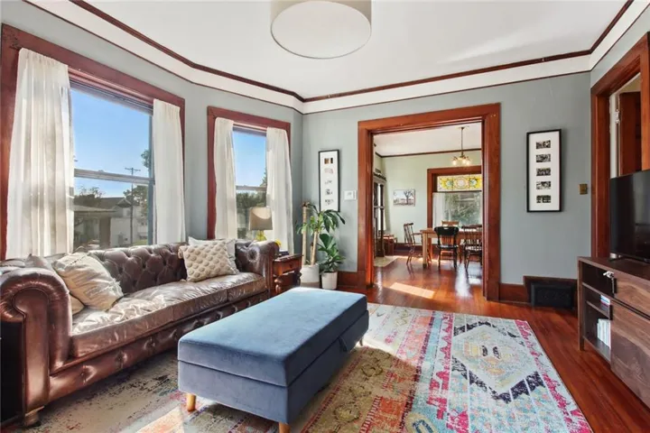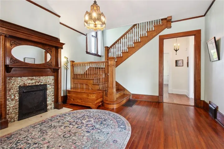 +"PublicRemarks": "Spacious and beautiful brick American Foursquare style home in the popular Historic NE District near Downtown KCMO. this gracious old home offers a light filled plan with hardwood floors, original millwork and spaces of generous proportions. Loaded with character including three gorgeous fireplaces, two sets of pocket doors and an elegant formal staircase. It's luxurious and comfortable with an exquisite blend of historic charm and modern styling. Main level features a formal entry parlor, living, dining and a well-appointed kitchen with butler's pantry. Laundry space is tucked neatly beside the kitchen. Bed level offers a full bath and four large bedrooms including one with a private balcony. The third level includes two bedrooms and expansive flex use space that's ideal for family recreation. Plus, the lower level is finished with a second kitchen, second living area, full bath and a flex-use bonus room that's ideal for home office, gaming or a non-conforming 7th bedroom. A huge front sitting porch adds nostalgic charm and the rear deck provides a seamless outdoor connection. Essential updates include roof, electrical, plumbing, zoned HVAC and refurbished original wood windows. Walkable to many nearby amenities and a short scoot into The River Market. This unique city home puts you at the doorstep of all Downtown amenities. Love living urban!"