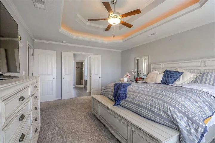 "LongDescription" => "Bedroom featuring ornamental molding and light wood finished floors"