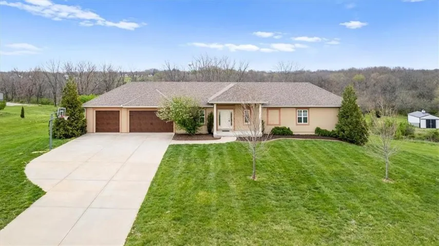 +"PublicRemarks": "Built in 2015 this sprawling 3.42-acre m/l estate sports a 4,000+ square foot home with a 3-car garage, double wide driveway and plenty of room for everyone! ONE-LEVEL LIVING with 1 of the 2 luxury primary suites each featuring dual vanities, jetted tubs, and expansive walk-in closets plus laundry, dining, kitchen and living available all on the main floor! With a subtle color palette, beautiful granite kitchen counters, and high-end finishes, including stainless steel appliances and luxury vinyl plank flooring. This home has been meticulously maintained and ideally located just 1 mile north of 50 Highway and 1 mile east of 7 Highway, near Lee's Summit Medical Center, shopping, lake life and more. This home offers the perfect blend of seclusion and accessibility. Check out the virtual tour! All offers considered."