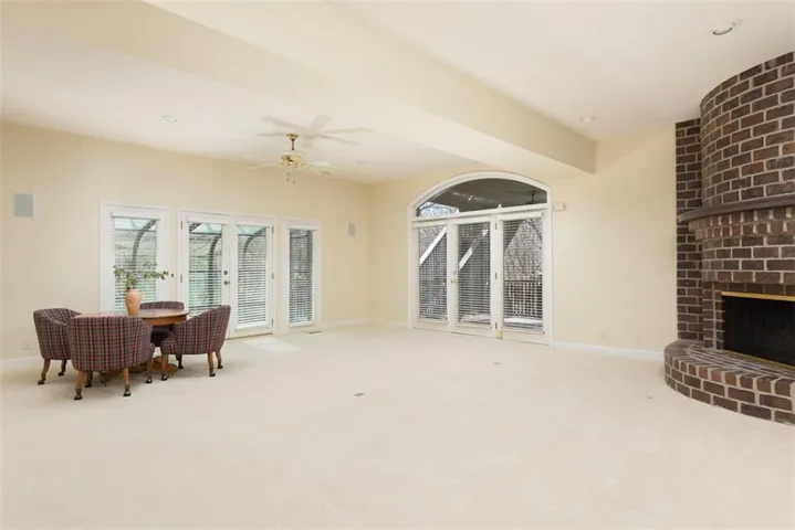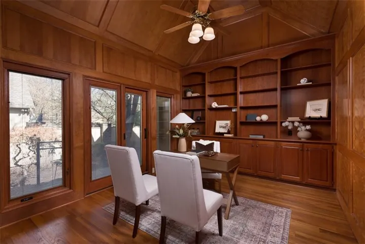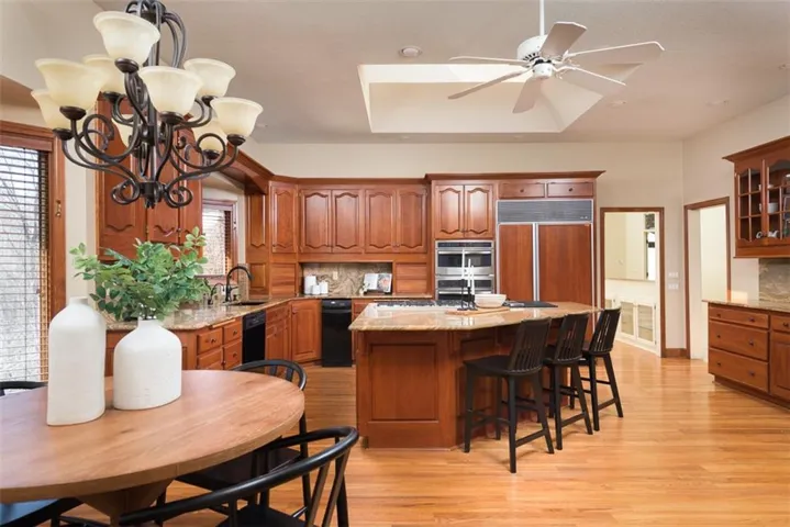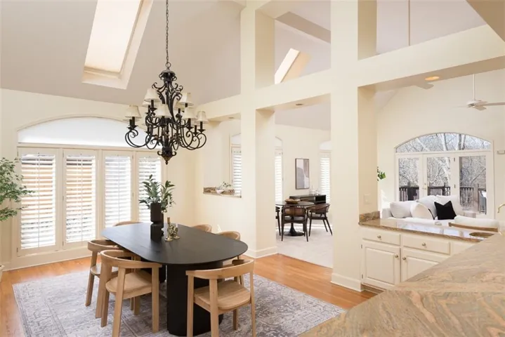 +"PublicRemarks": "This home surpasses all others in the Patrician Woods Townes area of this gated community. It will exceed your expectations with the sky high vaulted ceilings, spacious living inside while backing to a fully wooded area for extra peace and privacy. Enter through the beautiful landscaped courtyard into a stunning space that includes a well equipped kitchen with a massive island and eat-in space. A cozy library/den offers second living space on the main floor. The large formal dining area and living room are showered with sunlight and sky lights, but the centerpiece is the soaring stone fireplace. The primary bedroom has outdoor views, fireplace, custom built-ins and his/her closet space in the massive bathroom space. Lower level living is plentiful, with bedrooms/baths and a floor plan that accommodates entertaining, being cozy by the fireplace or enjoying the outdoor deck. Don’t miss the cedar lined custom closet on the lower level. This home offers the best combination of maintenance provided lifestyle, the comfort of spacious living/3 car garage and all the serenity of a wooded backyard. The newer $52k roof adds to worry free living! This is a gated community with tennis courts, community pool and clubhouse. Come and see the wow factor of this home that is conveniently located in the heart of Leawood."