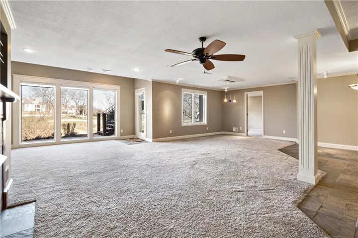 The home’s walk-out basement opens to a covered patio area, set within a maintenance-provided neighborhood, ensuring hassle-free living. Located close to Lenexa's array of shopping, dining, and entertainment options, this property combines the tranquility of golf course living with the convenience of city amenities. It represents a perfect sanctuary for those seeking a lifestyle marked by luxury and ease.