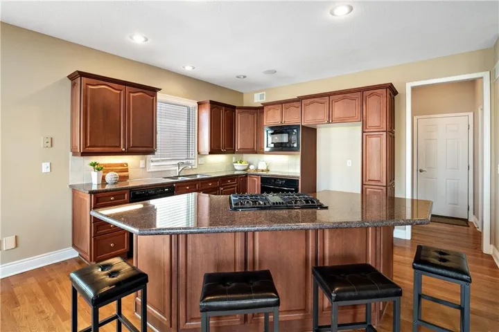 +"PublicRemarks": "Gorgeous Reverse Ranch Home with Premium Upgrades! This is a maintenance provided neighborhood. Privately positioned on a quiet cul-de-sac, this Drees Homes residence was honored as a 2021 Parade of Homes 1st Place Winner. Celebrated for its wonderfully large room sizes and thoughtful, livable luxury. With 4 Bedrooms and beautifully proportioned spaces throughout, this home is ideal for elevated everyday living. Recent upgrades include a New Kohler Whole Home Generator (2025), New screened porch with custom privacy wall (2025), additional professional landscaping and expanded sprinkler coverage (2024), and main level plantation shutters (installed 2021–2022). Rich hardwood flooring flows through the Dining Room, Kitchen, and Living Room, creating a warm and elegant first impression. This layout has been carefully designed for everyday ease, with the laundry room, closet, and bedroom connected in a seamless, functional flow. Just 5 miles from Lenexa City Center and 15 miles from The Legends, with quick access to K-7, K-10, I-435, and approximately 25–30 minutes to Kansas City International Airport. Meticulously maintained and truly move-in ready, this home is a must see!"