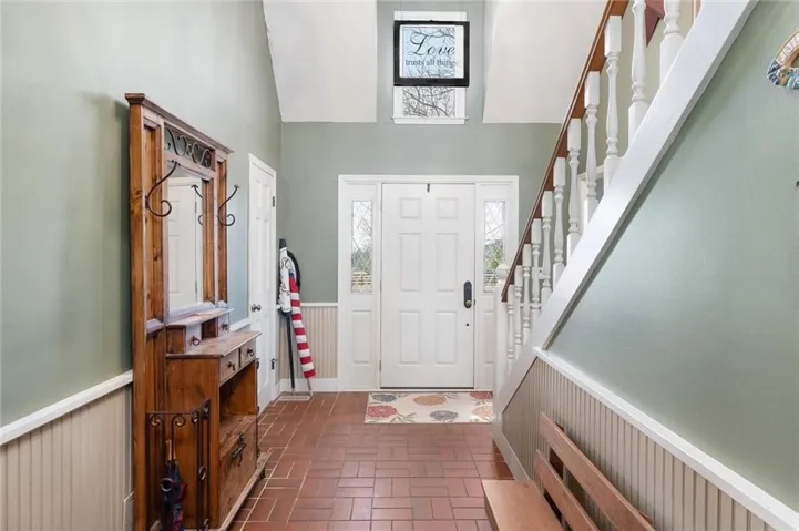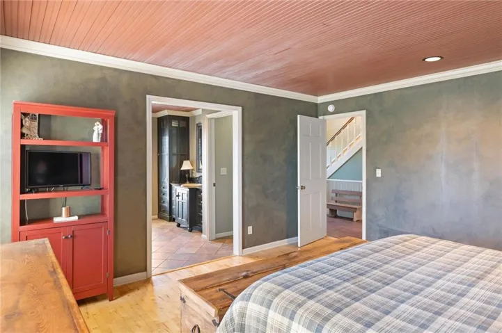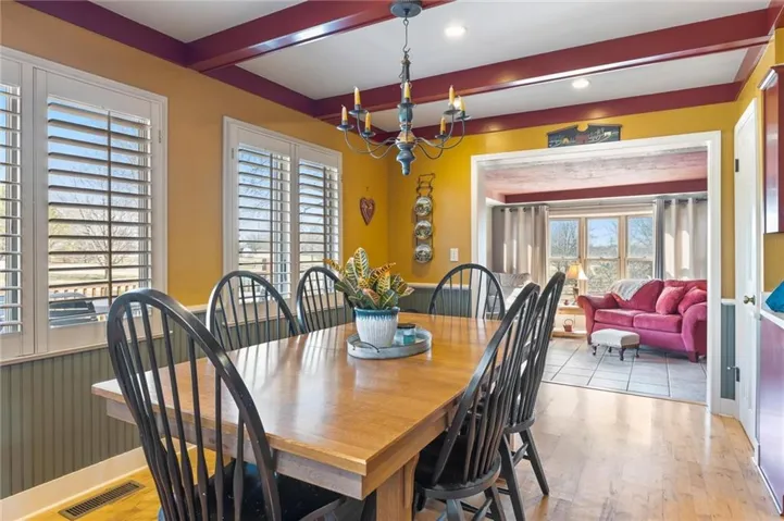 +"PublicRemarks": "2 acres of Country living located minutes from all the city amenities! This extremely well-maintained (low maintenance) brick 1.5 story home is such a rare, but amazing place to call home! Large master bedroom on main level with private bathroom. Nice open kitchen with gas stove, and breakfast room w/2 pantries + gorgeous sunroom w/ tile flooring! Huge great room w/ fireplace, new windows, and wood flooring. 1/2 bath on main level as well. 2 oversized bedrooms both have 2 ginormous walk-in closets! Full newly renovated bathroom w/ shower over tub, tile, and dual sinks. Finished basement w/rec room, amazing laundry room, sump pump, radon mitigation, water softener and humidifier. Beautiful plantation shutters throughout the home. 2 car garage has an attached workshop w/ heating and cooling option! Outbuilding/ 3rd garage is great for storing all your extra toys! East facing backyard is fenced, flat, with 2 acres of trees galore that is the perfect, peaceful setting! Lovely deck + firepit! HUGE BONUS: This home has FREE natural gas that will save you tons on utilities!"
