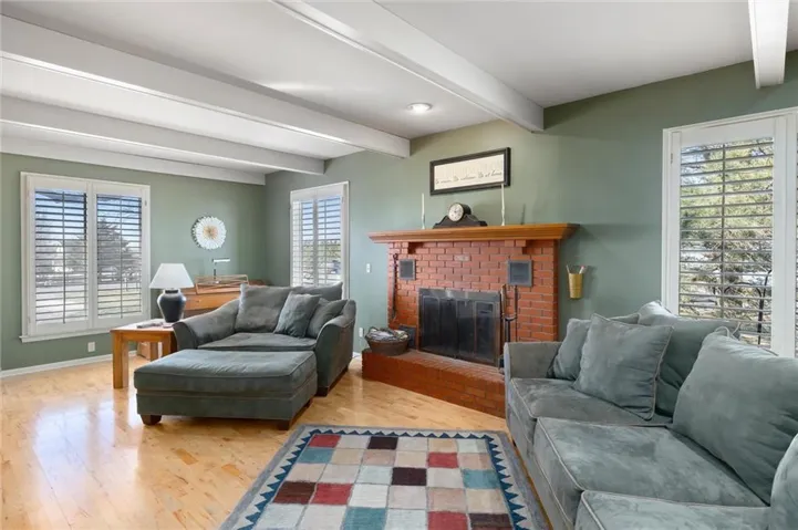 "LongDescription" => "Living area with wooden walls, wood-type flooring, a fireplace, and a textured ceiling"