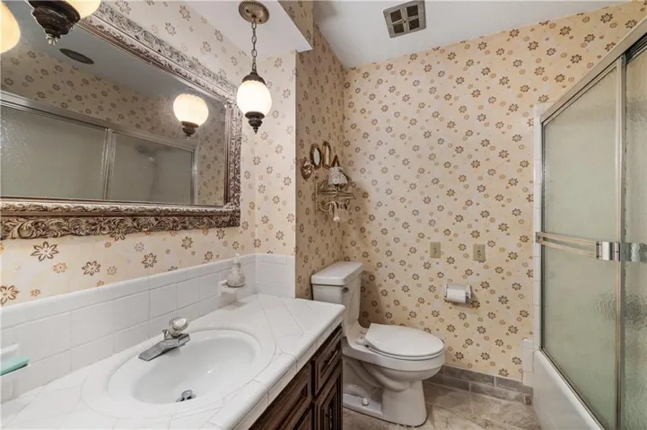 +"PublicRemarks": "Looking for a huge house on a big lot? This is it! Six bedrooms, 3/4 acre lot & access to a private lake! This home has great flow for entertaining and loads of off street parking. Generous room sizes, three bedrooms on main floor and 3 upstairs, main floor laundry, walkout basement with fireplace, bar area & stub for a full bathroom. Large Great Room with fireplace, lake views & access to multi-level deck. The spacious 2400+sqft main floor also has 3 bonus rooms currently used as a formal dining room, a private office and sitting room. The mostly unfinished full basement offers storage galore & endless possibilities for more living space if you need it. Perfect floorplan & space for multi-generational living. Well built & maintained home needs cosmetic updating & is priced accordingly. Bring your decor ideas & transform this one of a kind home into exactly what you want!"