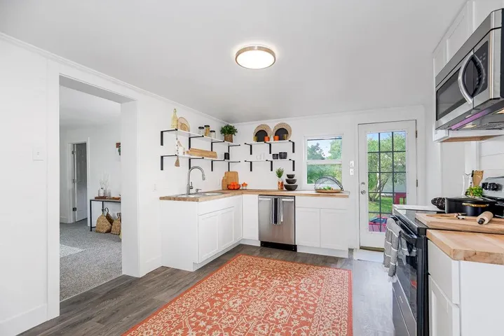 +"PublicRemarks": "Welcome to this beautiful 2-bedroom, 1-bathroom home! This charming residence has undergone some renovation, resulting in a modern and inviting living space. This home offers a perfect blend of design and comfort. The living area greets you with natural light, creating a warm and inviting ambiance. The freshly painted walls, complemented by new flooring throughout, lend a sense of freshness and elegance to the entire home. The kitchen has been tastefully upgraded, boasting butcher block countertops, modern cabinetry, and stainless steel appliances. Whether you're a seasoned chef or a culinary enthusiast, this kitchen provides the perfect backdrop for all your culinary creations. The two bedrooms are spacious and well-appointed, providing ample room for relaxation and personalization. The remodeled bathroom features contemporary fixtures and finishes. Outside, you'll find a backyard that offers endless possibilities for outdoor entertaining, gardening, or simply enjoying the fresh air. This space is perfect for hosting barbecues or gatherings with loved ones. Enjoy a quiet morning coffee on the sun porch. We still have a list of repairs we are currently working on. The Sun room will be finished with one piece of missing siding and one floor piece, painted walls and floor and new white fan."
