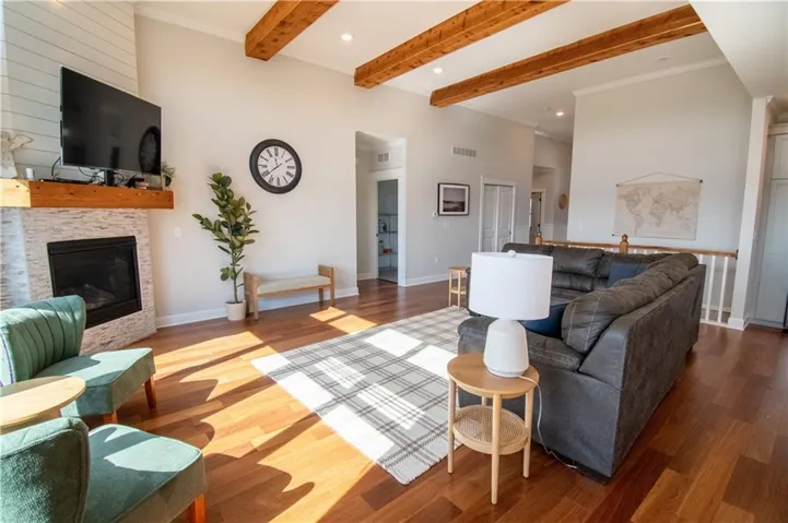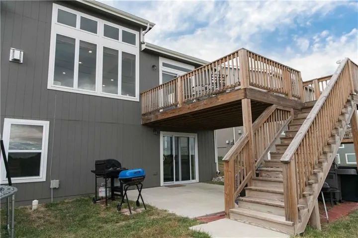 +"PublicRemarks": "ONLY 2 YEARS OLD! Welcome to your new dream home - a stunning 5 bedroom, 4 bathroom home located in a prime location. As you enter the home, you will be greeted by a large entryway with beautiful wood floors leading into the open main- floor living area, perfect for entertaining guests! Sit by the fire and enjoy your amazing uninterrupted views out the back windows! The primary bedroom is located on the main level and comes with an on-suite bathroom and a walk-in closet that will leave you swooning. The custom cabinetry in the kitchen adds a touch of elegance to the already breathtaking home. Walk out on the large back deck that seems to overlook all of Lawrence, and enjoy every sunrise and sunset! The basement has tall ceiling and walks out to a patio. This is just the cherry on top of having a beautiful and complete space for the 3 bedrooms and 2 full bathrooms located on the lower level. You will never run out of space as the three-car garage offers ample room for all your vehicles and storage needs. Conveniently located near I70, this home is perfect for KC and Topeka commuters. This home is a steal at just $579,900. Don't wait too long to make this home yours as it won't be on the market for long. Schedule your viewing today before it's too late!!"