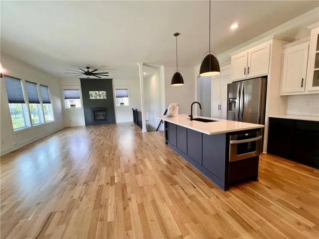 +"PublicRemarks": "Be the new owner of this beautiful home on long cul-de-sac that has been lightly lived in. Wonderful floorplan with primary suite on it's own side of the home away from other 2 other main level bedrooms. 3 bedrooms up enables you to have a main level office and a guest or child's room on same level with no stairs to have to climb. Light bright living space with gleaming wood floors and tall ceilings makes entertaining enjoyable and easy. The kitchen boasts granite counters, a large island, stainless steel appliances, enameled cabinets, and a walk-in pantry. The adjoining breakfast room has access to the covered deck. The great room has a featured fireplace and is set up for a TV which is viewable from kitchen. The primary suite is spacious, has an oversized entry level shower, long double vanity, large closet which is convenient to laundry. Lower level is finished with spacious family/recreation room, 4th bedroom and 3rd full bath. Lots of generous storage space has endless possibilities for additional finishing. Enjoy cul-de-sac living and a spacious yard to play in. Seller has added blinds, ceiling fan, additional landscaping and painted garage. Treat Yourself to this wonderful home and neighborhood community with 4 pools, well equipped playgrounds, sport courts, volleyball areas, 2 gorgeous clubhouses, one with fitness facility, trails and is conveniently located to award winning schools! Heritage Park which is also very close offers even more wonderful amenities like picnic shelters, a lake, off leash dog park, disc golf, 18 hole championship golf course and driving range, football, softball and soccer fields. Get Ready for a happy home-owning experience."