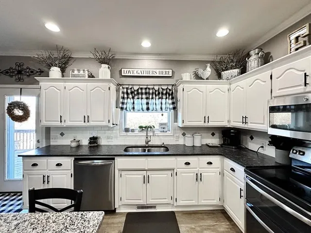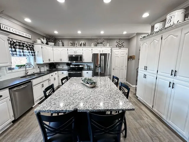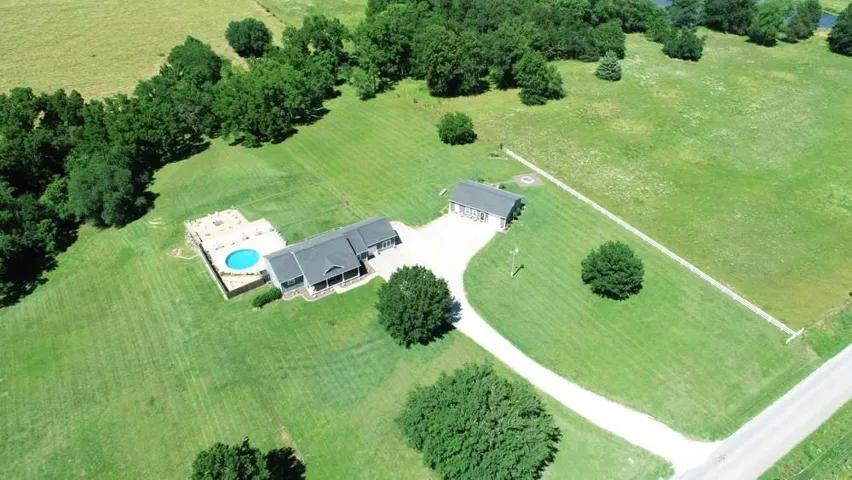 This stunning home & guest house is a combo that must be seen! Less than 3 miles south of El Dorado Springs on a blacktop road is a perfectly maintained, top-end home. With over 4400 sq ft of finished living space between the main level & walk-out basement, this home has large rooms, high-end finishes, & a comfortable space for everyone. The kitchen is beautiful; painted cabinets, granite countertops, an oversized dining island, stainless appliances, & tall pantry storage. A formal dining room, living room, & an oversized rec room provide plenty of seating & entertainment space. Also upstairs is the master suite featuring a giant walk-in closet & an ensuite bathroom that has a double vanity, soaking tub, & full-sized, double-shower. A guest room, full hall bathroom, oversized laundry room with 2 sets of washer/dryer hookups, & a ½ bathroom complete the main level. The basement is equally impressive with a second living room & adjacent wet bar, 2 guest bedrooms, a 3rd full bathroom, an exercise room, 2 storage rooms, & a full kitchen that directly accesses the pool deck. The back of the home is built for entertainment. A deck to the main floor overlooks an all-concrete pool deck that surrounds the 24’ diameter in-ground pool. The fenced backyard has a bocce court & a firepit plus a peaceful view of the property beyond. \r\n