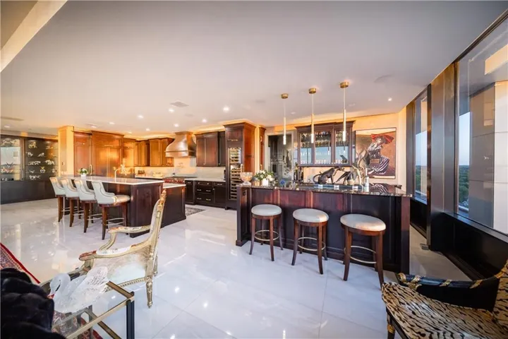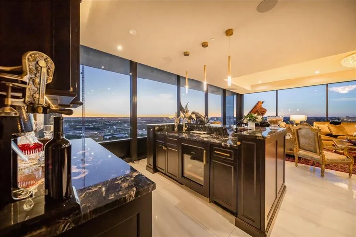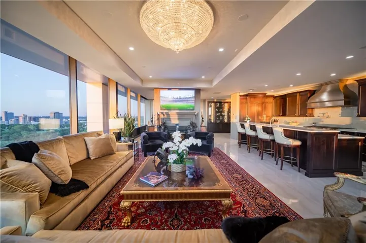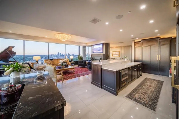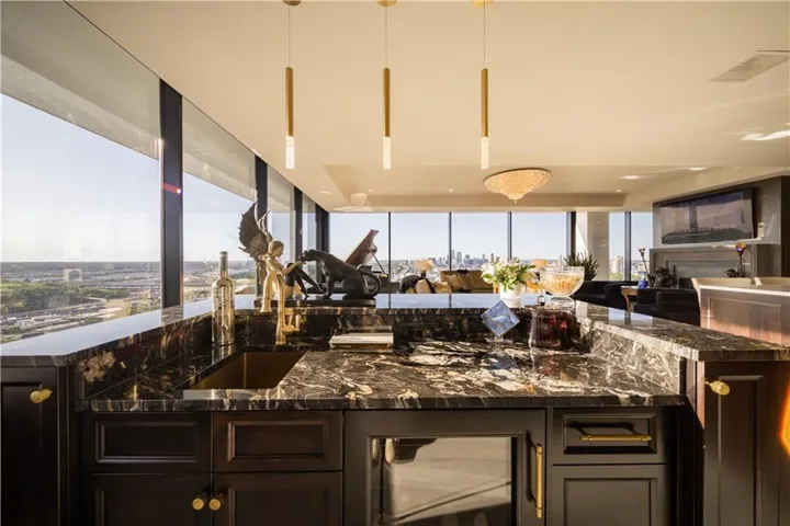 +"PublicRemarks": "Explore luxury living in this opulent condominium at One Park Place. Boasting nearly 3,000 sq ft of lavish space, this residence is a testament to exquisite design. The grand foyer welcomes you with large tile floors and art lighting, creating an ambiance of sophistication. Entertain with ease using built-in display cabinets featuring LED lighting and a wet bar equipped with two Sub-Zero wine refrigerators and a commercial ice maker. The kitchen is a chef's dream, featuring a 6-burner Wolf stove, grill, double ovens, pot filler, and Sub-Zero refrigerator and freezer. The formal dining room can accommodate upto 12 guests. The butler's pantry offers two additional Wolf ovens and another Sub-Zero refrigerator. Enjoy the convenience of electronic window shades, a central vacuum for easy cleaning, and a sound system with built-in speakers throughout. Marvel at the breathtaking views of downtown Kansas City from the comfort of your home. The large guest suite is a luxurious space for friends and family to enjoy. The primary closet is a sanctuary with hidden LED lighting on clothes rods, two safes for valuables, and even a beverage refrigerator. Additional perks include two storage units and three parking spaces in the garage. This meticulously renovated condo is the epitome of luxury, and much of the curated art and furnishings can be yours upon request, making it the most exclusive offering at One Park Place."
