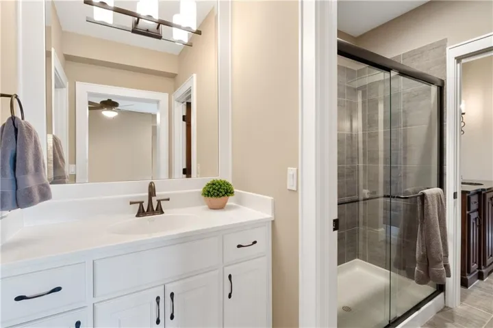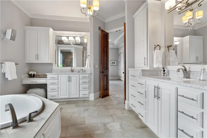 +"PublicRemarks": "PRICE REDUCTION! Lake Front home!! Perched beautifully on a cul-de-sac lot offering unparalleled privacy with views backing to community lake. Stunning 6-bedroom, 1.5-story residence, meticulously crafted by Ashner Homes. From the moment you step through the grand double doors with stone columns, soaring ceilings embellished w/wood beams, custom foyer & hearth room mirrors, and stacked stone columns. Spacious formal dining room w/magnificent great room and floor-to-ceiling stone fireplace w/ expansive windows overlooking the lake. The gourmet kitchen boasts Alder wood custom cabinetry with soft close drawers, an oversized island, breakfast nook, walk-in pantry, and top-of-the-line appliances including a built-in sub-zero refrigerator & freezer, two convection ovens, and convection microwave. Laundry & mud room area are tucked away from view but offer family personal space with lockers, utility sink, built-ins & coat closet. Entertain in style on the covered lanai w/FP, mounted TV, and views of the lake & fountain. Spacious bonus room off the kitchen offers endless possibilities as either family room or home office. Main-level primary suite provides spa-like bath, radiant heated flrs, walk-in closet w/custom mirrors & built-ins. Upstairs, discover 3 secondary bedrooms w/ensuite baths, loft, and second laundry rm. Additionally, a secret bonus room tucked away between the secondary bedrooms. The finished lower level features a media room, recreation space, custom bar w/stacked stone, gym w/rubber workout floor, built-ins and custom mirror. A 6th bedroom with ensuite bath and half bath. The entertainment space extends to the expanded covered patio that features a wood ceiling, outdoor speaker system and fully fenced lot. Additional upgrades include a whole house water filtration system, instant hot water recirculation, Haiku ceiling fan in the primary bedroom, belt drive garage door openers with wifi /video cameras, and more. Welcome to the communities finest!"