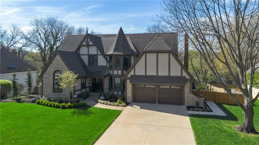 Welcome to this spacious and charming Traditional Tudor-style home in Oak Park Manor — offering 4 bedrooms, 2 full and 2 half baths, and over 3,200 sq ft of living space - in desirable Shawnee Mission School District with easy access to shopping, dining, parks and commuter routes. Step inside to a bright and functional layout featuring a large main level great room with a beautiful stacked stone gas fireplace and hearth with remote start and a wet bar. Formal and breakfast dining areas and a main-level laundry room for everyday convenience. Windows in the primary bedroom and study along with the two large exterior patio doors have all been updated. BRAND NEW ROOF installed 2/5/26. \r\n
