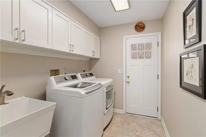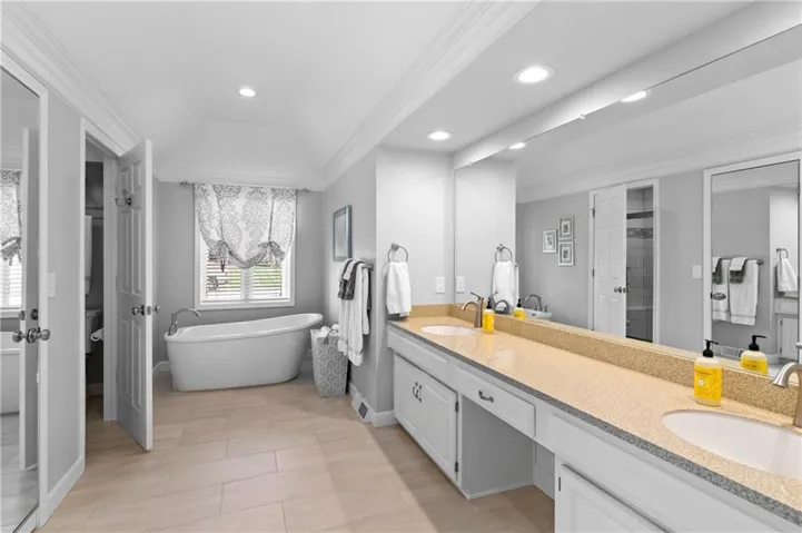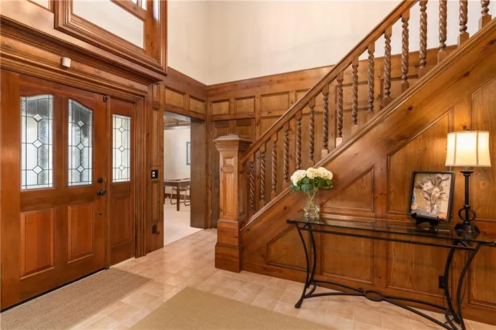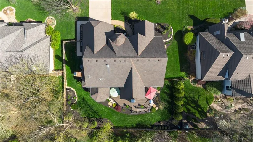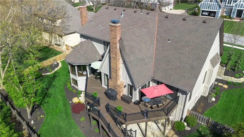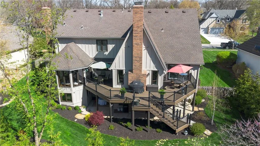 +"PublicRemarks": "Incredibly updated and maintained five bedroom, four and a half bath story and a half home on lush Patrician Woods lot conveniently located between 119th and 135th shopping and dining options. Center hall features intricately detailed wainscoting and staircase with access to study/office with built ins, formal dining room and living room with vaulted ceiling and fireplace. Spacious white kitchen with large island, breakfast room and hearth room with second fireplace offer direct access from garage through laundry room. Master bedroom and bath with dual vanities and separate tub and shower complete the main level. Three bedrooms and two baths up. Walk out lower level offers fifth bedroom, fourth bath, exercise room, recroom/family room with fireplace and wet bar, walks out to lushy landscaped and fully fenced yard with covered patio and expansive wrap around deck and unfinished space suitable for theater room. This home was built for your relaxation or entertaining inside and out yearround."