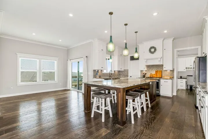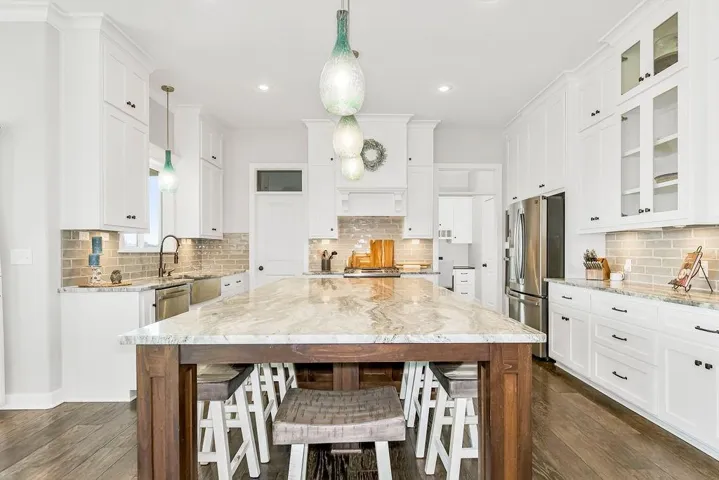 +"PublicRemarks": "This 2020 custom-built 2-story home in Seven Bridges is truly remarkable. Boasting over $128,000 in builder upgrades, the 5-bedroom, 5-bathroom "Mel" floor plan spans over 4,300 square feet of luxurious living space on a spacious 0.33-acre lot. Upon entering the main level, a grand foyer welcomes you with a stunning custom stair entry wall leading to the formal dining room, a living area with expansive windows and a beautifully crafted stone fireplace, and a chef's kitchen featuring a custom extended granite island, ceiling-height cabinetry, farmhouse sink, gas stove, soft-close drawers, and a sizable walk-in pantry. Adjacent to the kitchen are the extended breakfast area, office space with additional storage, half bath, and a newly stained and sealed covered deck. On the upper level, the large master suite includes tray ceilings and a lavish master bath with dual vanities, freestanding tub, walk-in shower, an extensive walk-in closet, and a laundry room for added convenience. Three additional bedrooms with en-suite bathrooms and walk-in closets provide ample space and comfort. The walk-out lower level offers a generous space with a finished suspended garage area ideal for a private office or home theater, a family room, a bar area pre-plumbed for a wet bar, a full bath, a fifth bedroom, and storage space. Outside, the property is equally impressive with lush landscaping, a covered deck and porch equipped with custom speakers and recessed lighting, a stone fire pit on a custom patio, perfect for outdoor gatherings or tranquil evenings. The sizable yard and sprinkler system enhances the appeal of the meticulously maintained grounds. Noteworthy features include built-in speakers, dual HVAC systems, invisible fence, custom blinds, pocket doors, and more (see full list of custom builder upgrades). The interior was freshly painted in 2024. Seven Bridges community offers resort-style amenities w/clubhouse/tennis/basketball/football/2 pools, banquet rm/library/playground."