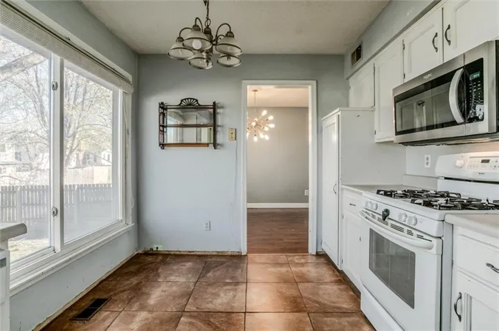 +"PublicRemarks": "Great opportunity under $300k in Olathe that's close to schools, shopping, and I-35! Newer roof, driveway and NEW chimney/fireplace. Two living spaces along with an eat-in kitchen and formal dining, too! Walk-out to the covered patio & backyard. Interior access to the basement (NOT through the garage). House needs cosmetic work and is completely livable while you gain that sweat equity."