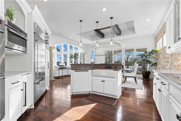 +"PublicRemarks": "Your own piece of Paradise is finally found! At nearly 6000 gross sq ft,this Stunning,Superbly Updated Dream Home on a Premium Lakefront Lot on Wide Body Water has Views Directed down to the newly Expanded Lake! Your outside playground awaits w/large Salt Water Pool,Fountain,Cooking Station,& Arbors setting off the views of Lake & variety of plantings,trees,& waterfall leading to personal Dock w/3 Lifts. Completely Rare find:home has had a complete Remodel over past few years. Full Furniture pkg w/recently purchased Restoration Hardware top of line custom selected pieces; Golf Cart,Malibu Speed Boat,2 SeaDoo Jet Ski's(Used) can be purchased separately. Architect-Dream Home Designs brought this custom home design to life w/Soaring Ceilings,Huge Marvin Window Pkg,Multi-facet Roof w/Plaza Tile,Dramatic Paver Driveway,Bathrm access directly from Pool,& Lake Views from most every room. Walk into a Large Great Rm w/Alderwood Beams, Limestone F/P & Columns, & Gorgeous Walnut Wood Floors adjoined to Kitchen w/Wolf/SubZero Appliances, Quartz Ctrs. Top of Line Lighting & Plumbing fixtures exclusively from Restoration Hardware abound thru-out,starting with entry RH Odeon Chandelier w/hundreds of glass prisms that glisten in the sun offering a casual elegance. No expense spared on sconces, chandeliers & pendants in home showcasing the gorgeous additions such as the Stone Wall in the Dining area paired w/Alderwood Beams. Walnut Wood Floors on entire Main Floor including the Kitchen,Great Rm,Office,Master. Bathrms in this home are a showcase w/Gorgeous Porcelain Tile Floors, Quartz Counters, Elaborate Light/Plumb Fixtures. Lower Level offers a perfect party venue:Large Family Rm, F/P, & Bar w/Quartz Counters & is also home to 4 Bedrms (One Exercise Rm). Storage is not be a problem w/nearly 700 sq ft under garages (could be perfect Media Rm).Note tax info inaccurate as full finish of home was done at later time."