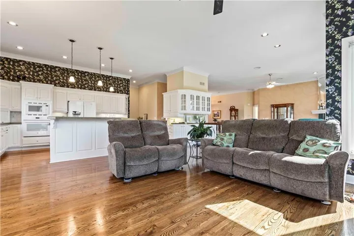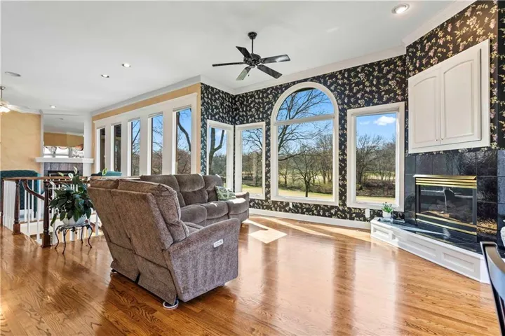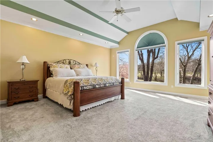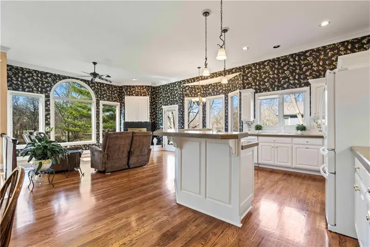 +"PublicRemarks": "Magnificent View! Welcome to your dream home, located on the 10th fairway at Iron Horse Golf Course. Imagine waking up to breathtaking views of the manicured greens and lush fairways every morning from the comfort of your own home. Inside greets you with a bright & spacious living area. The open-concept kitchen features granite counters, island, pantry, and a deck for grilling or morning coffee overlooking the serene setting of the golf course. The back deck is perfect for outdoor entertaining. Main floor features laundry room off the kitchen, hearth room, formal dining room, formal living room, and Primary Suite with enormous walk-in closet. Garage entrance to lower level, in addition to main entrance. Home theatre room boasts 75" built in screen with surround sound. Full kitchen on lower level, great storage. Location Location Location! Close to shopping restaurants and entertainment. Blue Valley Schools!"