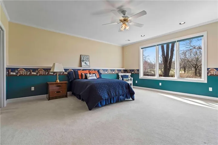 "LongDescription" => "Bedroom featuring ornamental molding and light wood finished floors"