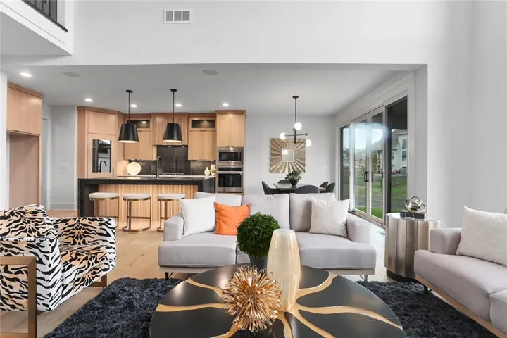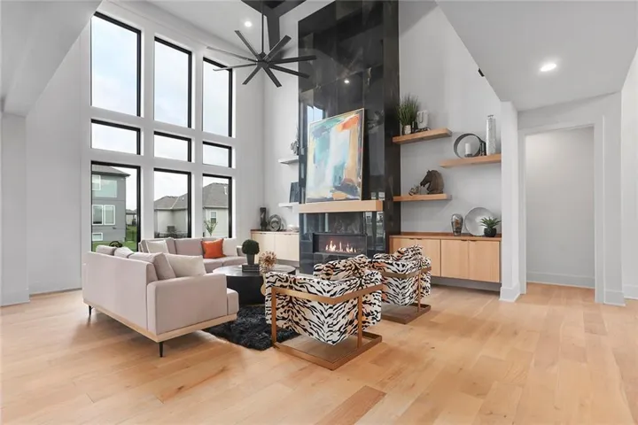 This custom home is located in Hook Farms, Hunt Midwest’s newest and fastest-growing Lee’s Summit community featuring 65+ acres of green space and a community pool. Wooded walking trails and community garden coming soon.