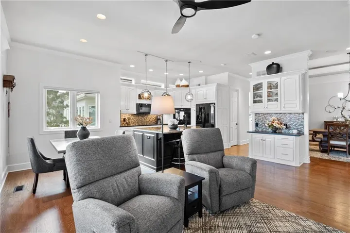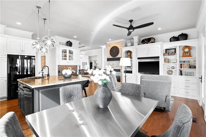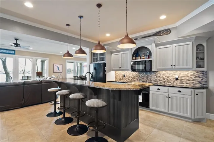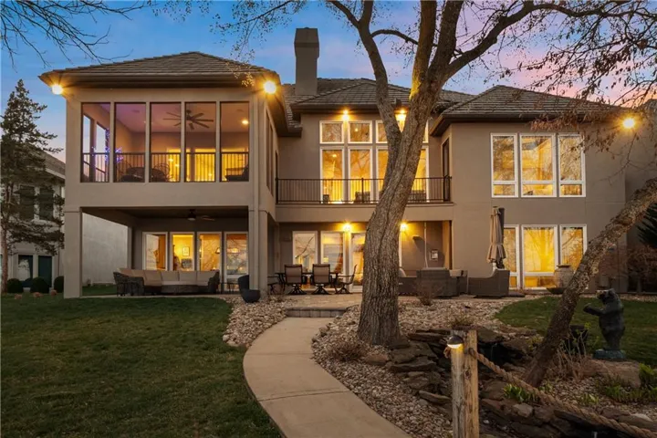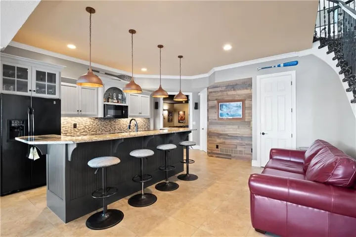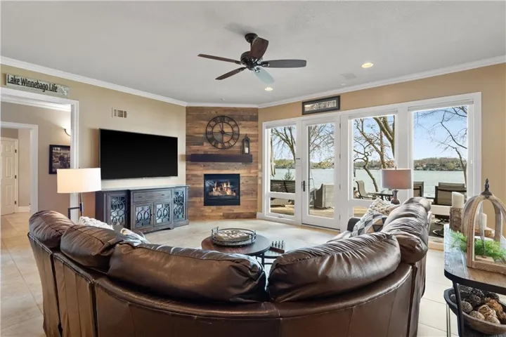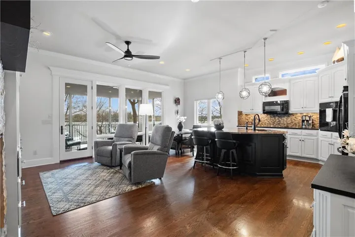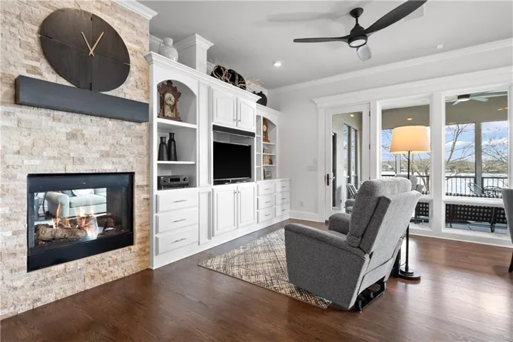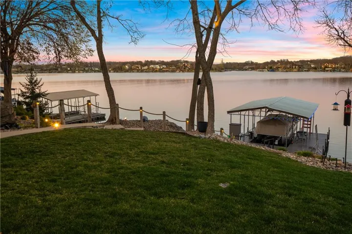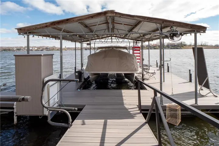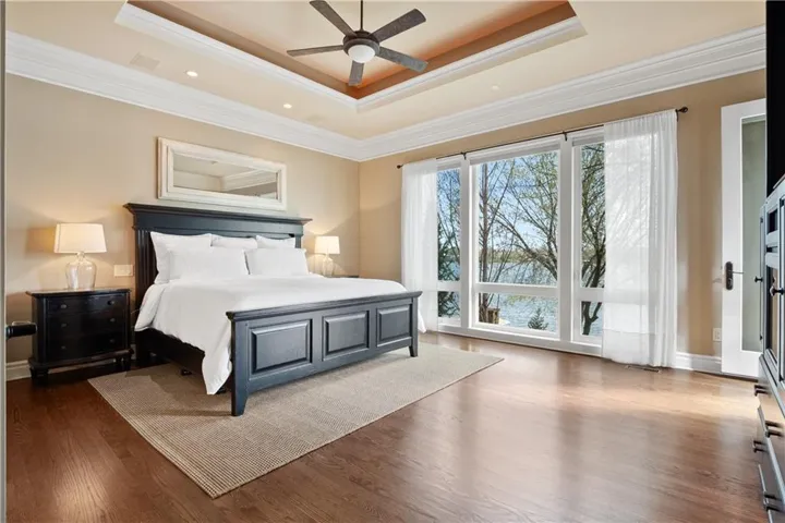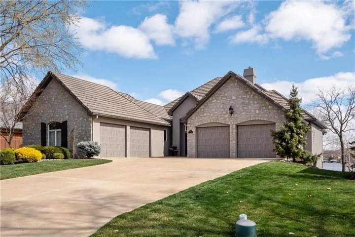 +"PublicRemarks": "Wait No More! This exquisite lakefront property features breathtaking panoramic lake views both up and down with floor-to-ceiling windows spanning the entire back side of the home! Ranch Reverse Floorplan has over 2600 sq ft on the main level with 2 bedrooms, and 2600 sq ft +/- downstairs with 3 full bedrooms totaling over 5200 sq ft. No expense was spared and pride of ownership shows in every room. From the concrete tile roof, to the stucco surround with 2 coats of Sherwin Williams Duration Paint, to the newer triple pane windows! The granite countertops throughout, custom oversized doors, and rich wood floors add elegance and sophistication to every corner of the house. The state-of-the-art media/theatre room is the perfect spot for rainy-day entertainment. Heading out the back, you walk down a beautiful landscape with an upgraded waterfall feature and lakeside firepit to your very own private dock with a boat slip. This will be the highlight of your summers with 400 acres of lake to explore. Beyond the lake, this community also offers walking trails, playgrounds, tennis courts, baseball fields, basketball courts and a new community pool is supposed to come Summer 2025. Don’t overlook -- 13’ Main Floor Ceilings, Newer Triple Pane Windows, 2 Full Kitchens, Screened-in Covered Deck, Built-In Surround Sound in almost every space, Huge Master Suite with Hardwood Floors and Large Walk-in Closet with built-in dressers! Don't miss the Maintenance-Free Decking, and Dock. Upgraded Slate Tile Roof. 4 Car Suspended Garages with Newer Garage Doors. Ample storage options or built-ins in every space. True Daylight Bedrooms in the basement with En-Suite Bathrooms. Living here would indeed feel like a perpetual vacation--It's a dream come true for anyone seeking a life of luxury by the lake! This competitively priced, luxury lake home is one you will not want to miss. Nothing to do here except move in and enjoy lake living. See supplements for a full list of amenities/upgrades."