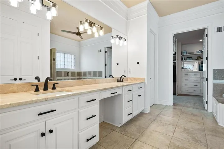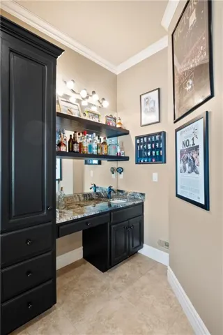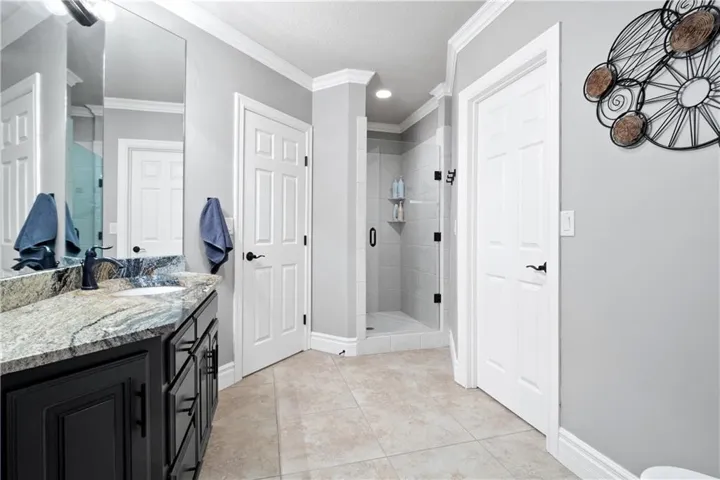 "LongDescription" => "Bathroom with shower / tub combo and ornamental molding"