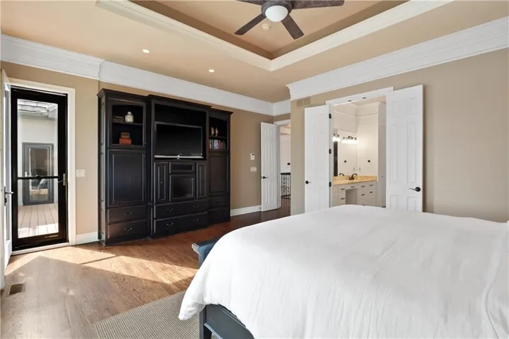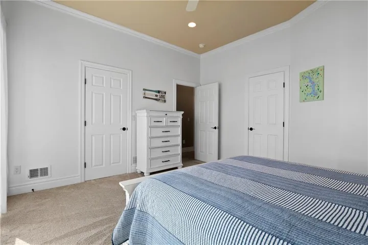"LongDescription" => "Bedroom with ornamental molding and wood-type flooring"
