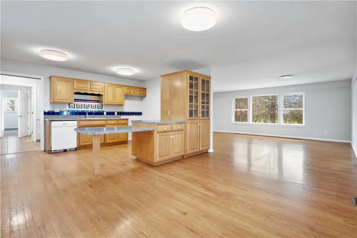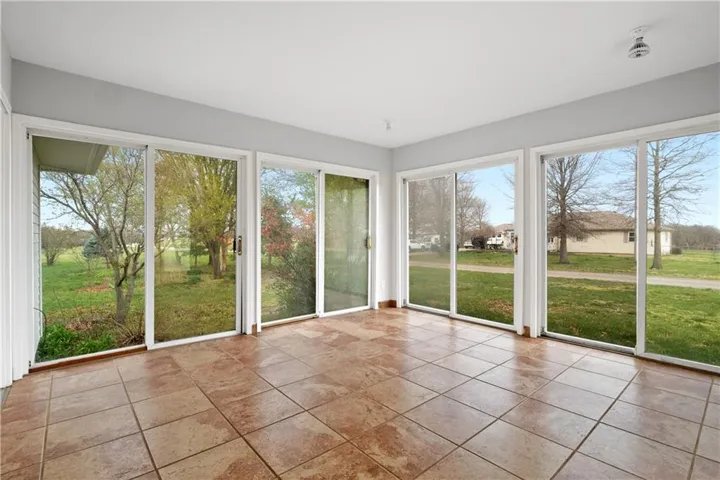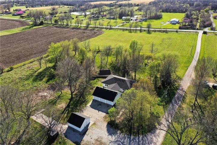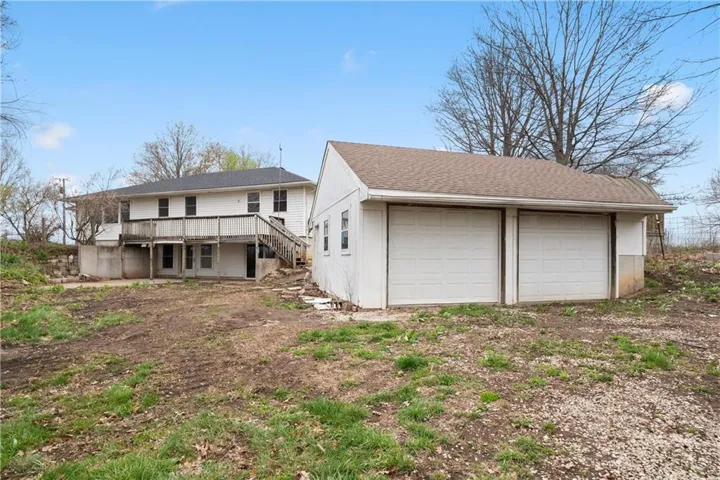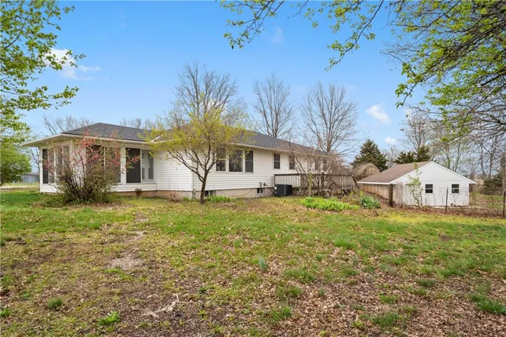 +"PublicRemarks": "Ideal country living close to the city! Move in ready ranch with so much potential! This property needs some TLC but has plenty of space for future projects to make it your own. This nearly 4k sq ft home on 3.18 acres offers one level living and hardwood floors throughout the main floor! Great room with picture window and lots of natural light opens to kitchen with gas stovetop, breakfast bar, dining area and ample cabinet/counter space, perfect for family gatherings and entertaining! The Master bedroom has two walk-in closets and private bathroom with shower. 2 large additional bedrooms (each with walk-in closets), full bathroom with whirlpool tub and laundry are also on the main level. The breezeway/mudroom attaches to the 3-car garage (stubbed for full bath!) and allows for easy access to the front and back of the house. Finished, walk out lower level features 2nd living quarters with a family room, kitchen, laundry area, full bathroom and 4th bedroom. 2 additional rooms on lower level can be used for office, craft room or non-conforming bedrooms! The front, detached 2 car garage is currently used as a storage unit but can easily be converted back to a garage. Extra concrete pad for your RV has access to water hydrant and electrical! Back detached 2 car garage/workshop also includes a greenhouse! Both detached garages have concrete floors and electrical. All paved highway access to short gravel drive. Convenient location less than 20 minutes to Lee's Summit grocery stores, shops and restaurants!"