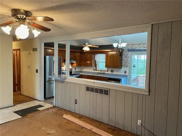 +"PublicRemarks": "WHAT AN AMZING HOME!! Living room w/ fireplace encased w/ built in shelving on either side! Eat in kitchen w/ stainless steel appliances! Walk out to nice deck from kitchen to great private fenced backyard w/ storage shed. 3 Bedrooms, Hollywood Bath on main level and 1/2 bath on lower level with Family Room and 2 Car Garage. Thermal Windows and Vinyl Siding. New Furnace. This home needs some flooring, paint and sheetrock repairs. Great area w/ easy access to freeways & shopping!!"