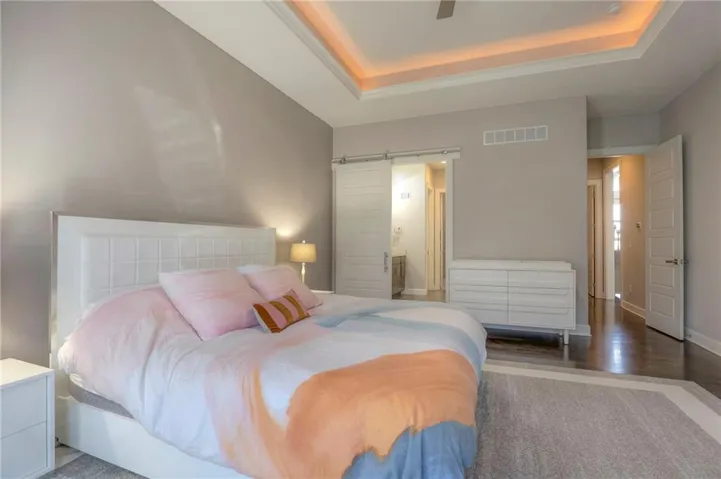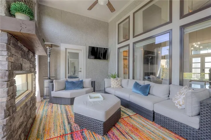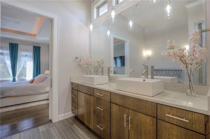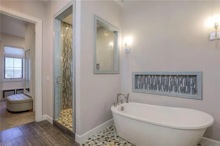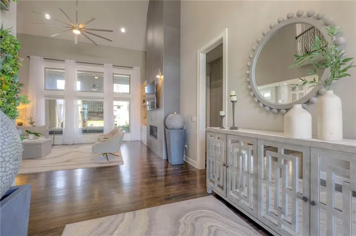 +"PublicRemarks": "GORGEOUS 1.5 STORY SOFT CONTEMPORARY BY GLEN MOCK IN COVETED WATERS EDGE. THIS OPEN FLOOR PLAN FEATURES 20" SOARING CEILINGS IN ENTRY AND GREAT ROOM WITH GORGEOUS FLOOR TO CEILING SLAB FIREPLACE. LARGE PRIMARY BEDROOM ON MAIN LEVEL WITH BEAUTIFUL WINDOWS AND A SPA-LIKE BATHROOOM WITH FREE STANDING TUB, WALK-IN SHOWER, AND LARGE CLOSET ATTACHED TO LAUNDRY ROOM. MAIN LEVEL HAS FORMAL DINING ROOM THAT COULD ALSO BE USED AS AN OFFICE. KITCHEN BOASTS A FABULOUS QUARTZ ISLAND AND A LARGE EAT-IN AREA THAT WALKS OUT TO ENCLOSED PATIO WITH A SEE-THRU FIREPLACE. NICE SIZE PATIO PERFECT FOR OUTDOOR ENTERTAINING. 3 BEDROOMS ON SECOND FLOOR HAVE PRIVATE EN-SUITE BATHS AND WALK-IN CLOSETS. 2 BEDROOMS IN DAYLIGHT BASEMENT SHARE A JACK & JILL BATH. BASEMENT HAS LOADS OF REC SPACE PLUS 2 LARGE STORAGE AREAS. NEW FENCE, NEW LANDSCAPING AND ADDITIONAL LAUNDRY ADDED IN BASEMENT. WELCOME TO YOUR DREAM HOME...PLEASE VIEW THE BEAUTIFUL VIRTUAL TOUR!"