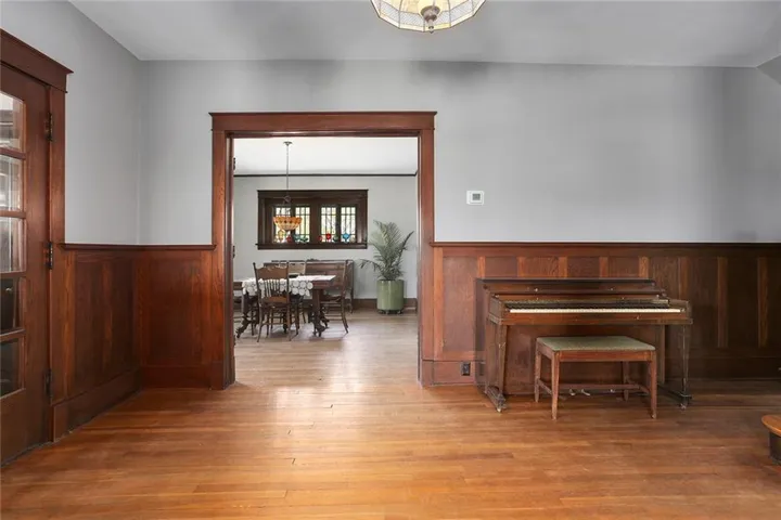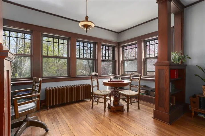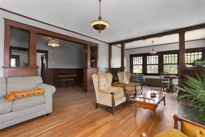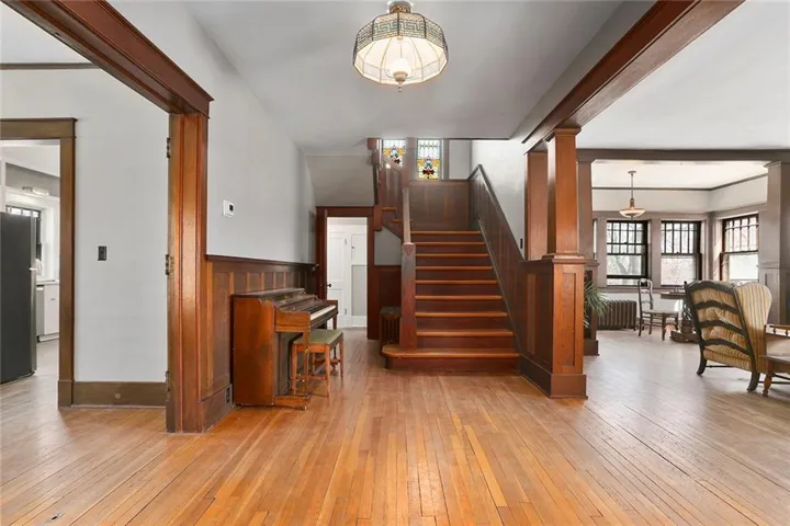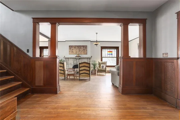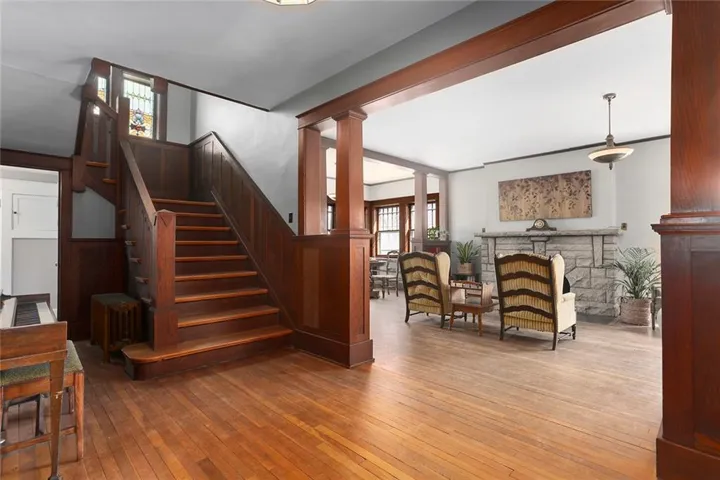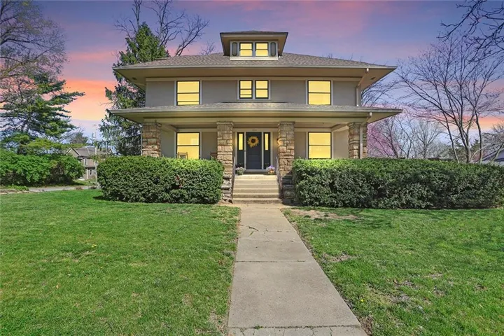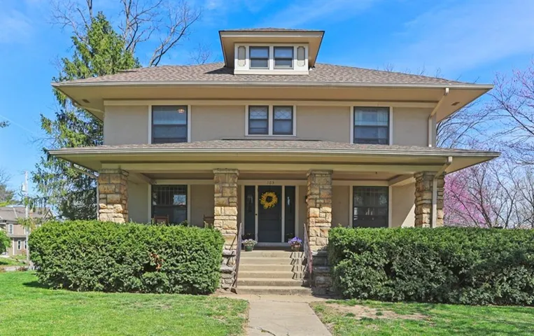 +"PublicRemarks": "Discover the timeless charm of this stately Four-Square Prairie Home, located just minutes from the Historic Liberty Square. From the moment you step inside, you'll be greeted by the character & elegance of yesteryears, with beautiful original woodwork adorning every corner. You’ll be captivated by the stunning stained-glass windows that illuminate the grand stairway, setting a truly enchanting ambiance. The living room beckons w/ its framed large windows that bathe the space in natural light, while the centerpiece stone fireplace stands as a testament to style & warmth, eliciting a resounding "wow" from all who enter. Entertaining is effortless in the spacious eat-in kitchen & formal dining room, where culinary delights are savored amidst the backdrop of timeless elegance. Conveniently located on the main floor, a half bath and laundry area add practicality to the home's layout. Upstairs, 3 bedrooms await, including a sizable master suite that spans half of the second floor, boasting its sunlit sitting area, and walk-in closet. Ascend to the finished 3rd story, a versatile space that can be transformed into a 4th bedroom, play area, REC room, or office, offering endless possibilities to suit your lifestyle. The basement area provides ample storage space plus a small, finished room perfect for a workshop, play area, or craft room. Outside, the expansive covered front porch wraps around the side of the home, simply the perfect spot to relax and unwind. The fenced yard provides lots of added space perfect for play & gardening. Additional features include a basement garage, off-street parking, and radiant heating, ensuring comfort and convenience year-round. Don't miss the opportunity to own a piece of Liberty history in this meticulously maintained home. Schedule your showing today and experience the timeless allure of this beautiful home."