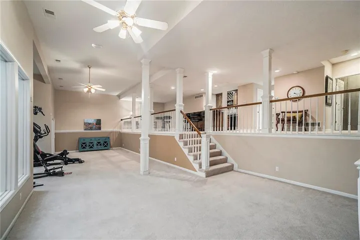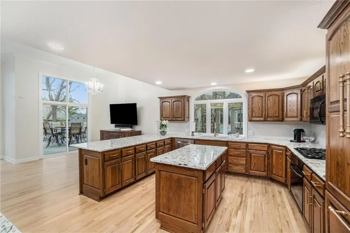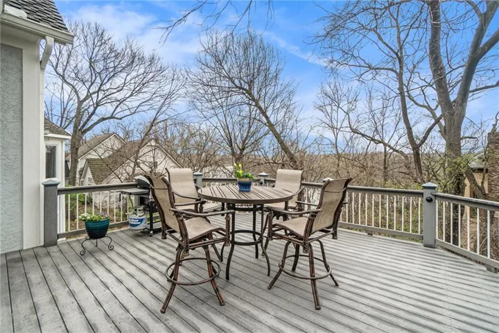 +"PublicRemarks": "THIS IS THE ONE! Overlooking a beautiful cove and nestled in the old growth trees at the end of a quiet cul-de-sac you will find your SANCTUARY! Unmatched Don Julian Custom Home Builders quality construction in this 1.5 story home 4 Bedroom 4 Bath home. A rare find in Riss Lake with beautiful updates throughout. A chef's dream kitchen with loads of counter and cabinet space, walk-in pantry, hidden refrigerator and a spacious granite island. Entertain in the AMAZING two -tiered lower level with a beautiful wet bar. Enjoy the solitude and comfort of the beautiful owner's suite complete with a recently updated and BEAUTIFUL master bath. Room for everyone to spread out and find their own space. PERFECT FOR A HOME BASED BUSINESS W/Suspended garage for additional storage and a double wide utility door. Low maintenance stucco siding, 50 year composition roof, sprawling composition deck and so much more! You'll love the amenities of this esteemed Northland neighborhood. THREE beautiful outdoor areas- Upper Deck, Lower Deck and Patio to enjoy the sights and sounds of nature. Large room sizes, custom trim throughout and many built-ins. A one-of-a-kind community with boundless activities and amenities like 3 Salt-Water Pools, 135 Acre Recreational fishing and boating lake, tennis courts, sand volleyball, play area, nature trail and so much more. Riss Lake Riptides swim team, Kid's Triathalon, Fishing Club, Adult Pool Party, Corn Hole Tournament and way more. Live like you're on vacation every single day. Hurry to move in and enjoy your summer here in your beautiful Riss Lake residence!"