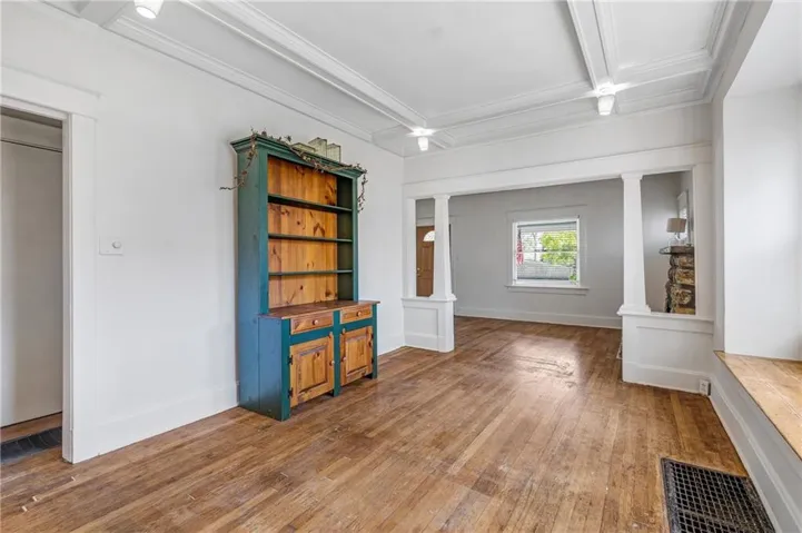 +"PublicRemarks": "Such a great opportunity in acquiring your 1st home or another investment property! This home has some of the original architecural detail suchas the box beam ceiling in the dining room with the corner lights still in tact. And the dining room also has a wonderful window seat. The back yard is fenced and there is a storage shed in the back yard that is attached to the house for interior access as well. This home is being sold in 'as is' condition. It does need some updating, however, it is totally functional in it's current condition."