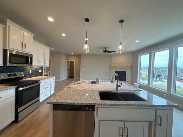 +"PublicRemarks": ""The Ashton II," an exquisite reverse 1.5 story residence with an extra large granite island, corner stone fireplace, private mud room, walkthrough master closet, jacuzzi tub in master, master shower with granite seat, dual quartz vanity in main, lot close to an acres, composite covered deck, extra large concrete pad in back, walkout basement, 2 full bathrooms in basement, HE furnace, blown in insulation. Laundry on main level. Wood floors through main floor primary bedroom. Walk in pantry. Wet bar in the walkout basement with room for a full size fridge. One bedroom in the basement has an en-suite bathroom. Beautiful front porch. In ground sprinkler system. All square footage is approximate. This home is complete and move-in-ready!"